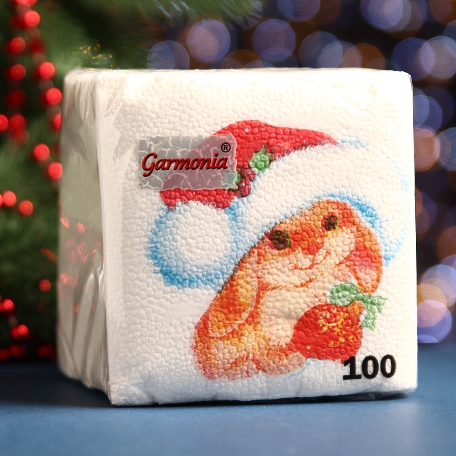 Салфетки бумажные Гармония цвета «Символ года Зайчик», 24х24 см, 100 листов