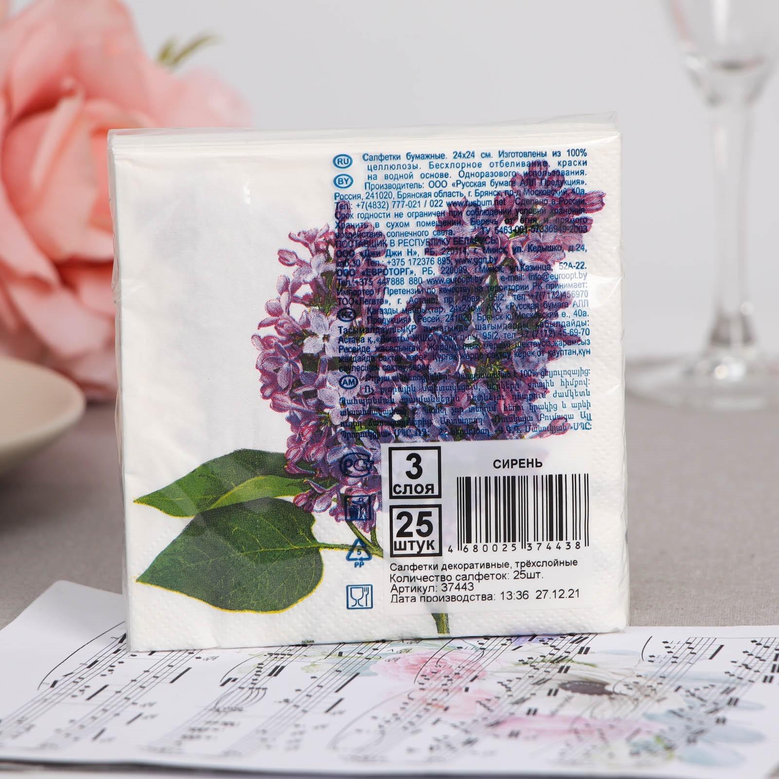 Салфетки бумажные "Bouquet de Luxe" Сирень, 3 слоя,24x24, 25 листов