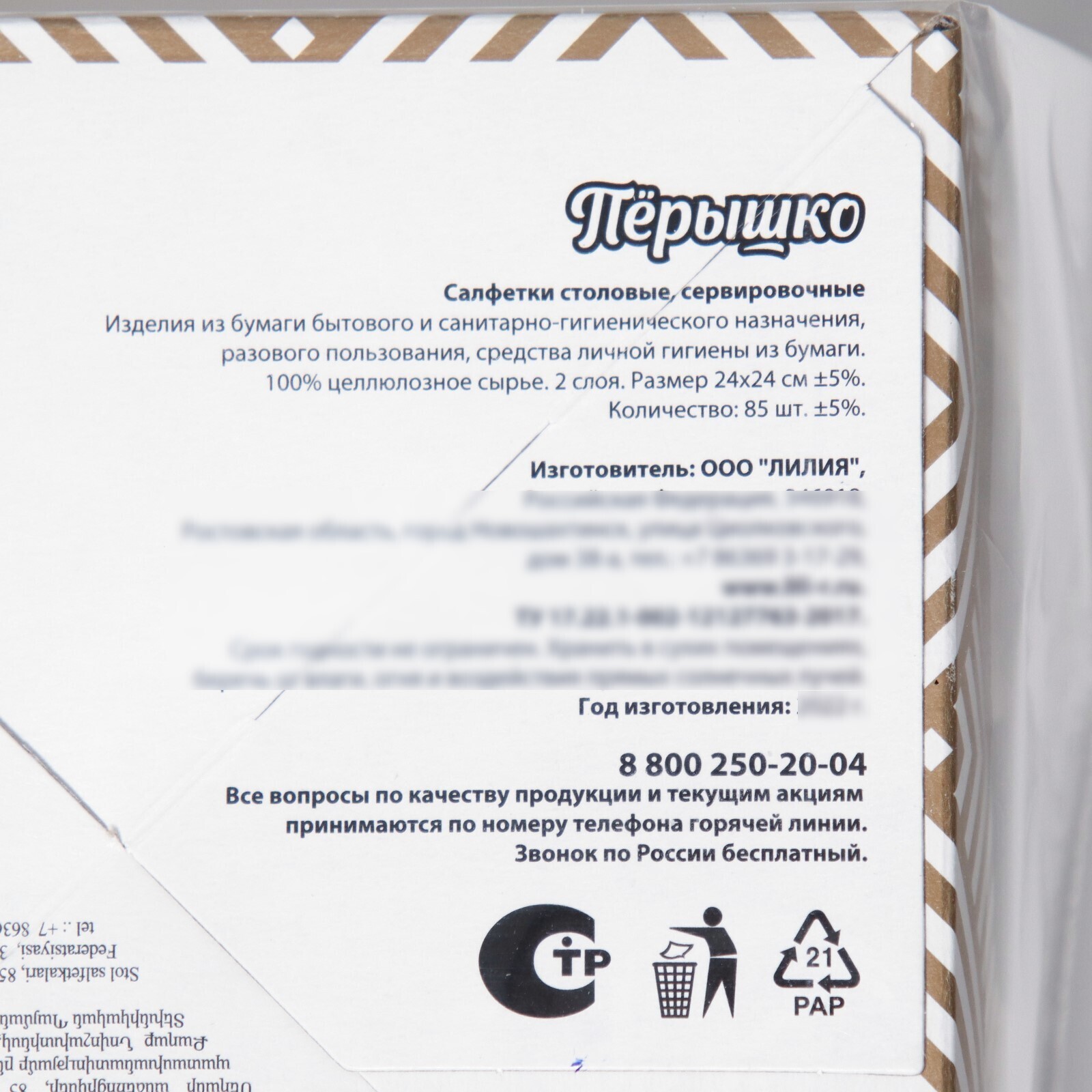 Салфетки бумажные «Перышко», 2 слоя, 24*24 см, 85 шт.