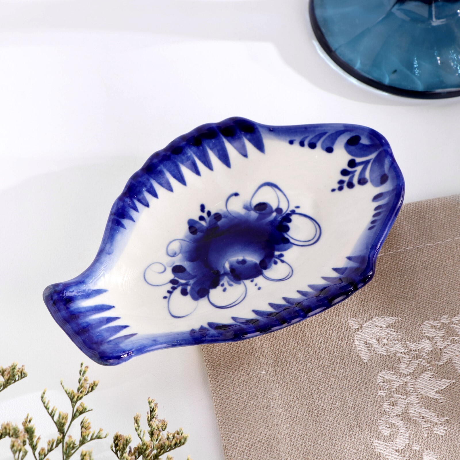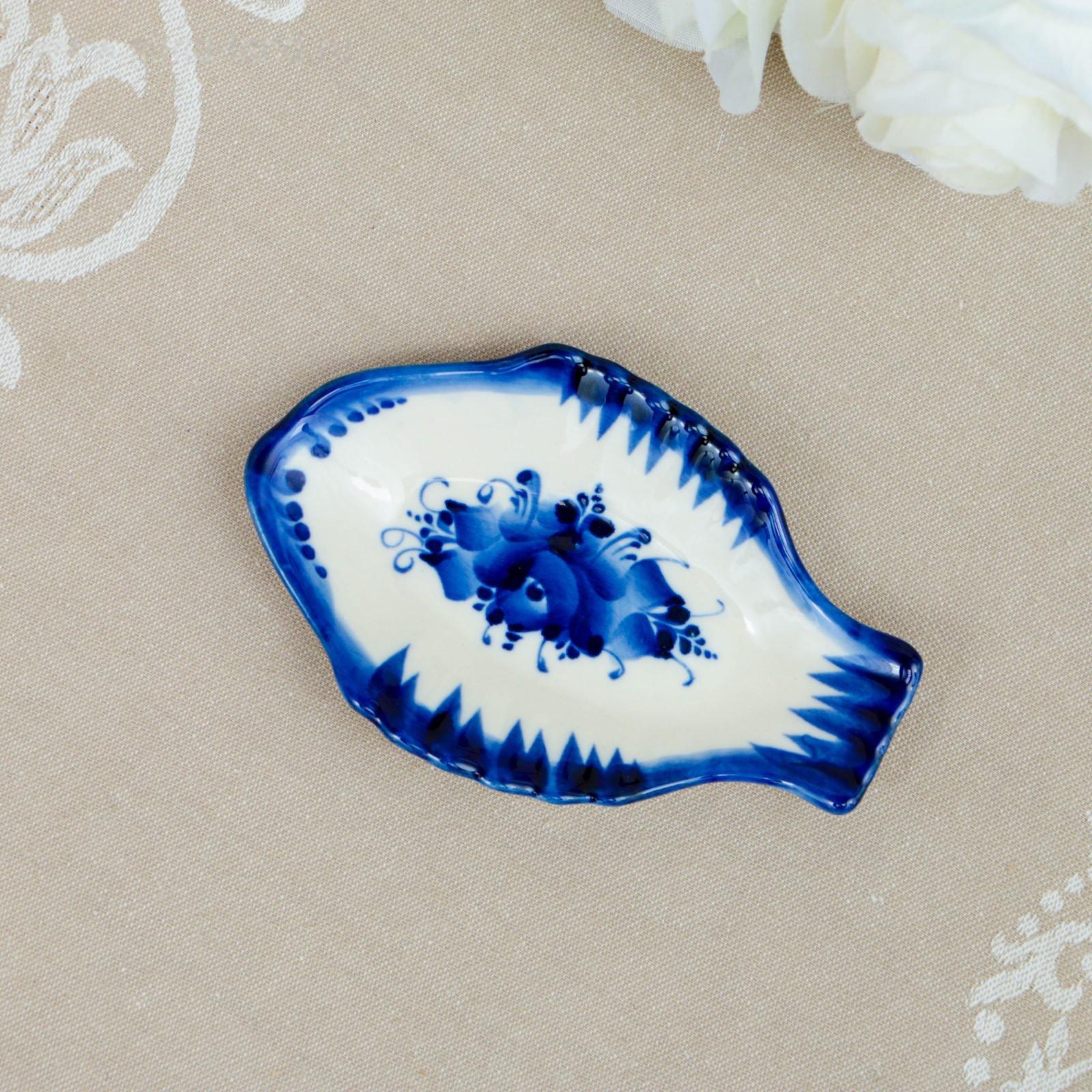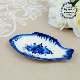 Шпротница "Рыба", гжель, фарфор, 2х13 см