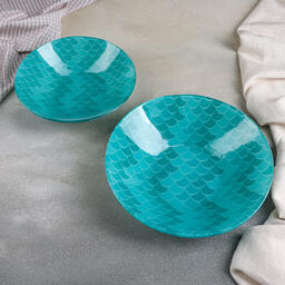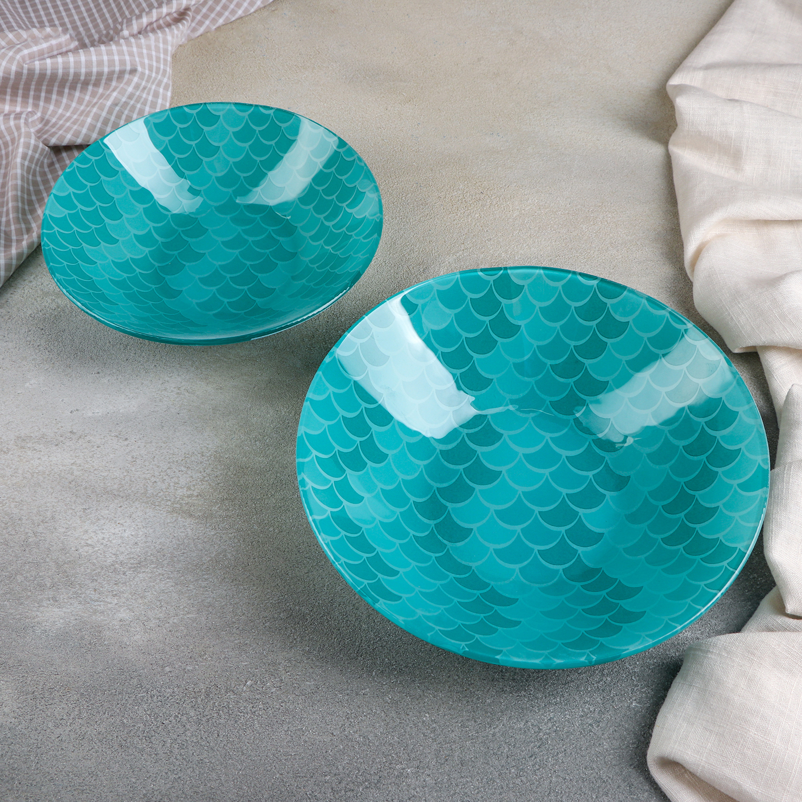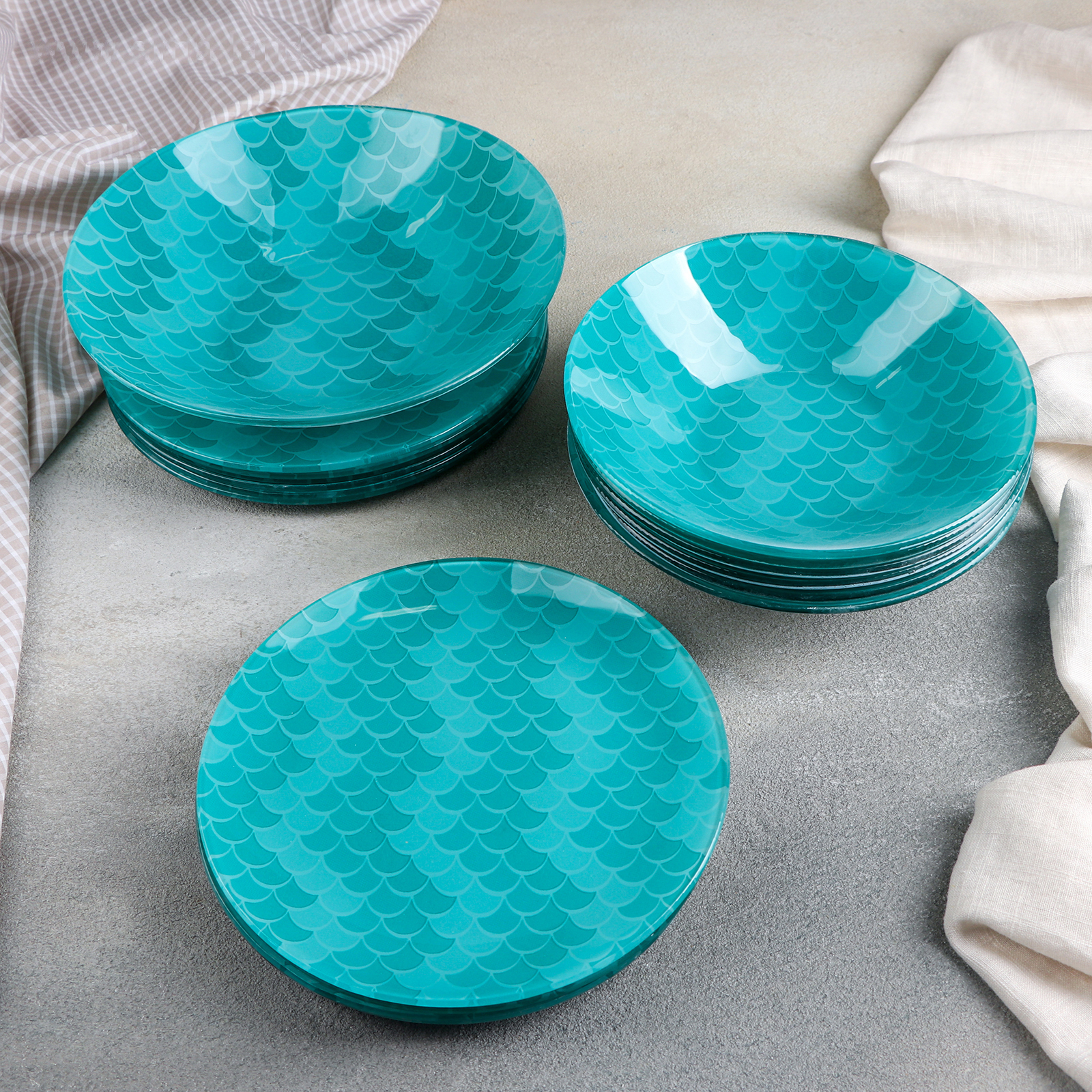Набор тарелок «Сирена», 19 предметов: салатник, 6 десертных тарелок, 6 обеденных тарелок, 6 мисок, цвет бирюзовый