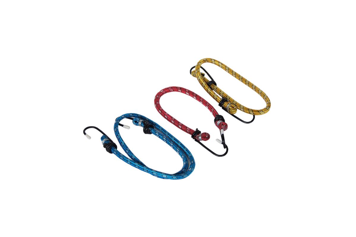 Набор багажных ремней состоит из трех жгутов разной длины с крюками на концах. Применяется для закрепления грузов, например, на автомобильном багажнике.