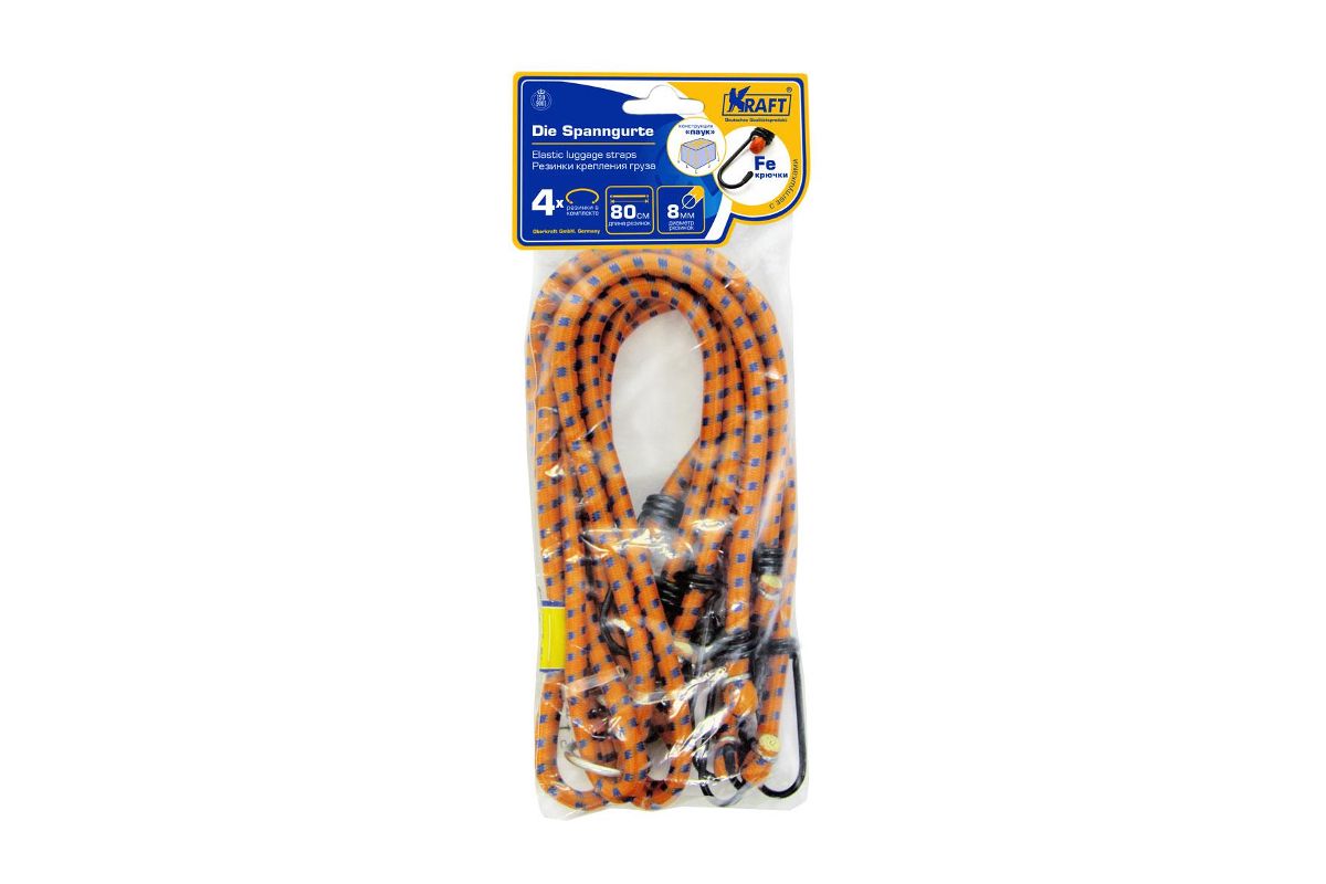 Набор KRAFT KT 860004 резинок паук 4 шт 80см d=8мм метал.крючки