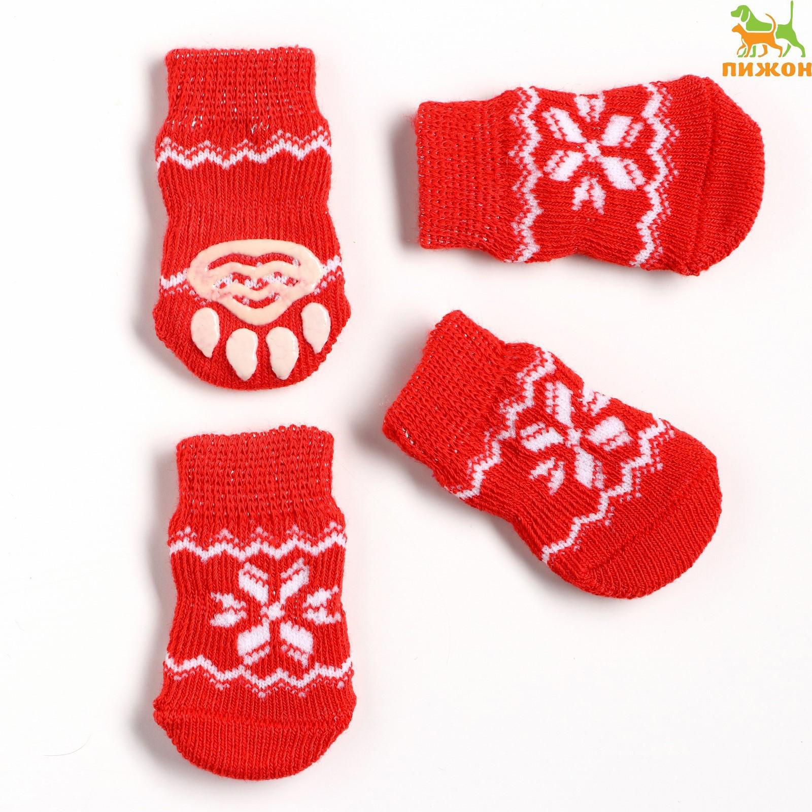 Носки нескользящие "Снежинка", размер М (3/4 * 7 см), набор 4 шт, красные
