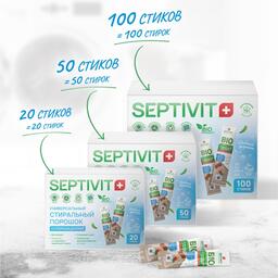 Друзья, рады представить вам нашу НОВИНКУ - это универсальный стиральный порошок В СТИКАХ! Новый формат, разработанный для вашего удобства, в объеме 20, 50 и 100 стиков! Помимо удобного формата, наш порошок в стиках:- 1 стика хватает на 3 кг белья;- Эффективно удаляет пятна и загрязнения;- Полностью вымывается из ткани;- Сохраняет цвет одежды;- Подходит для стирки детского белья;- Является полностью гипоаллергенным;- Безопасен для окружающей среды. SEPTIVIT Premium / Септивит это российский бренд, выпускающий экологически чистую и безопасную бытовую химию по доступным ценам. Продукция бренда SEPTIVIT Premium соответствует стандартам ISO 9001:2015, ISO 14001:2015. Septivit Premium - ЭКО-решения для Вашего дома!