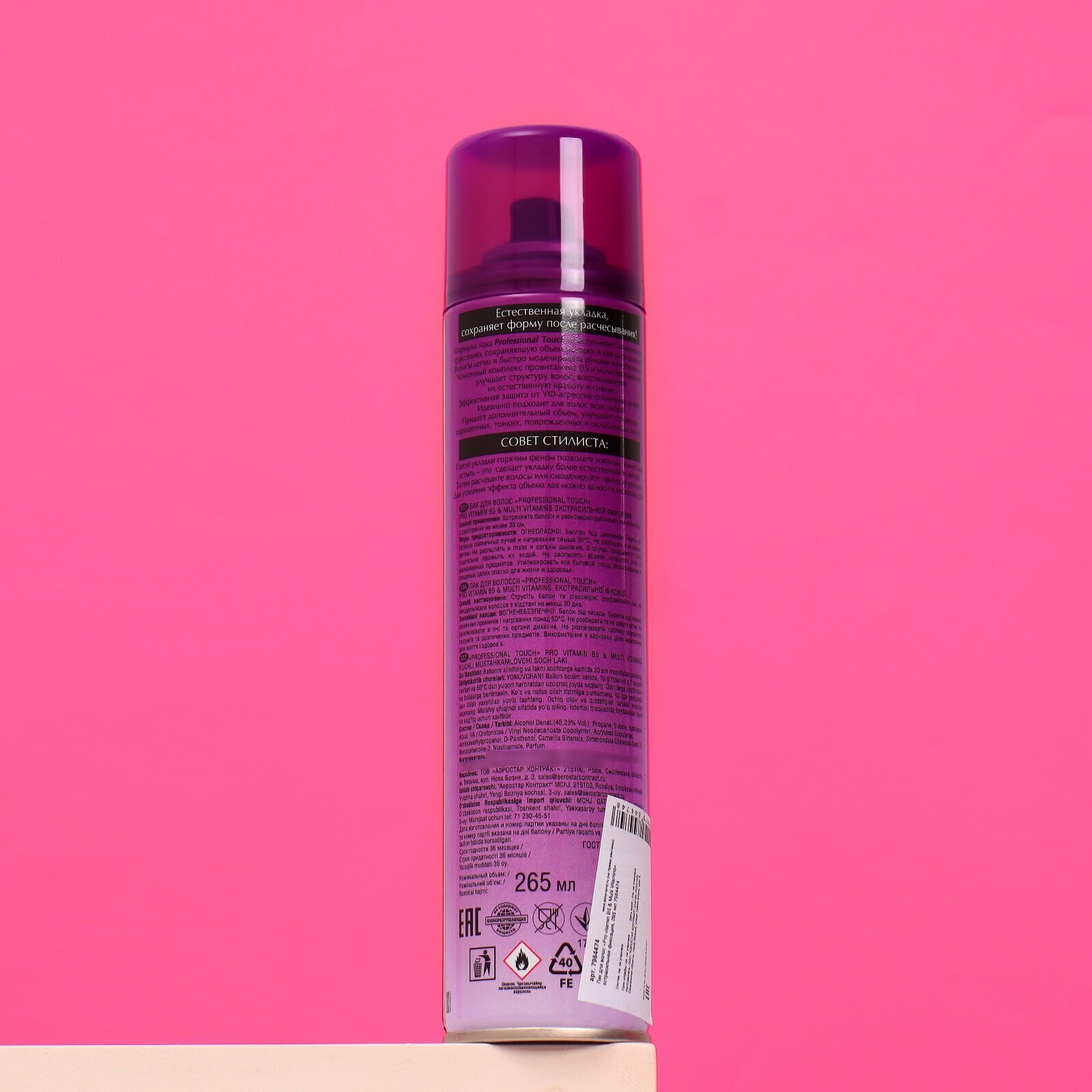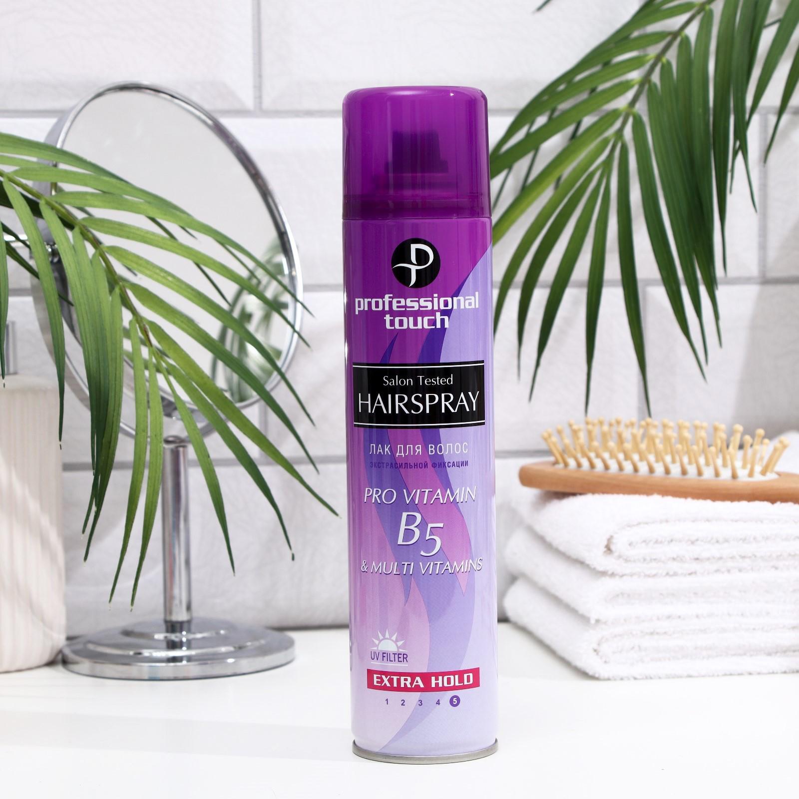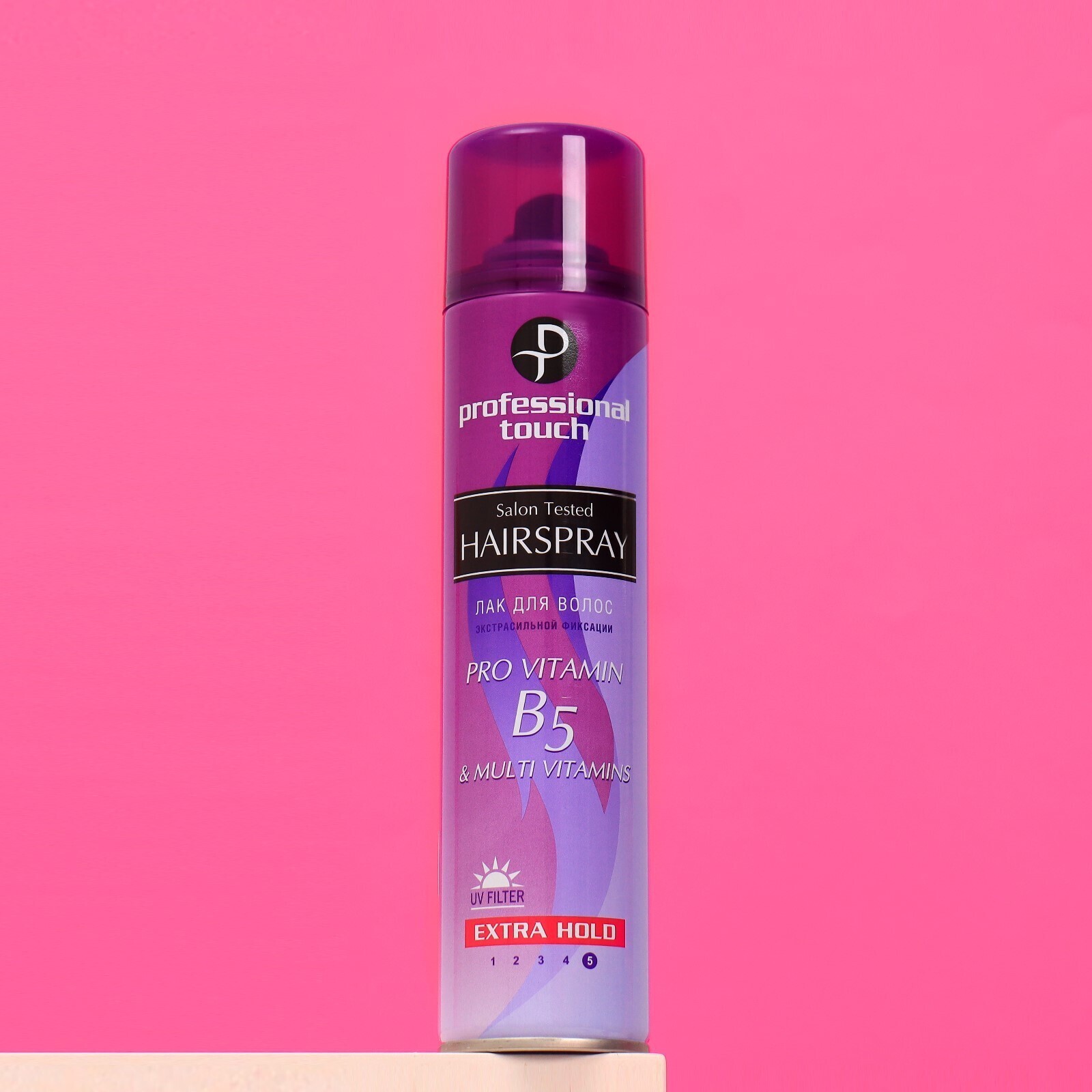 Лак для волос Pro vitamin B5 & Multi Vitamins» кстрасильная фиксация - широко известная, проверенная миллионами покупательниц марка профессионального ухода за волосами дома. Благодаря запатентованной формуле лак для волос Professional Touch и особому сочетанию полимеров, витаминов группы B и комплекса мультивитаминов лак обеспечивает ультра сильную фиксацию при любых погодных условиях при этом сохраняется динамичность укладки и естественный вид.