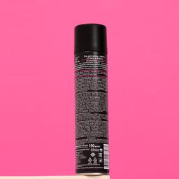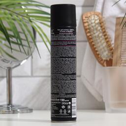 Сохраняет укладку в течение всего дня. Лак образует жёсткую плёнку, поэтому фиксирует причёску любой сложности.