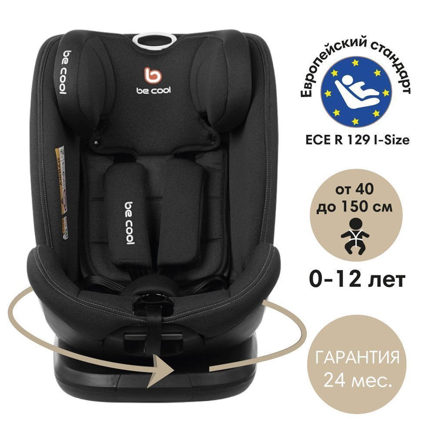 Автокресло Be Cool Sun I-Size рост от 40 до150 см/ 0-12 лет/ гр.0 1 2 3 Be Dark 7032 Y76