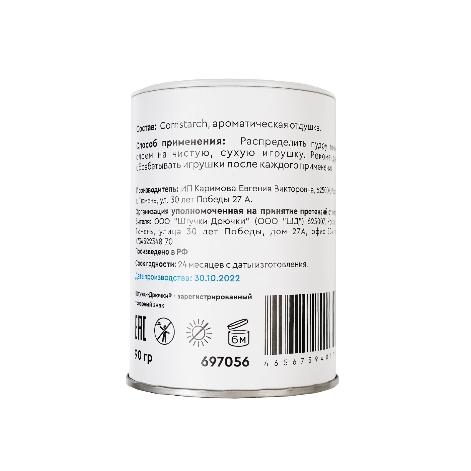 Как использовать: Помой игрушку, просуши, распредели пудру тонким слоем по всей игрушке. Перед каждым использованием пудру рекомендуется смывать.