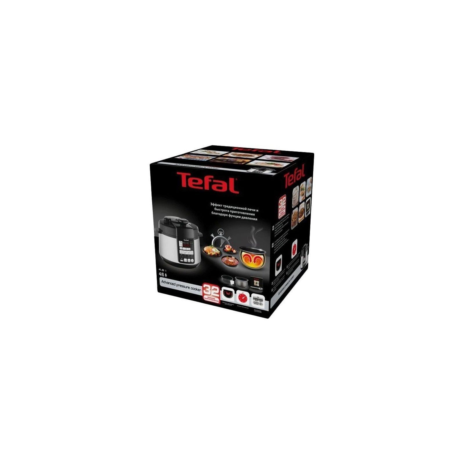 Мультиварка - скороварка Tefal AdvancedPressureCooker CY621D34 дозволить вам проводити менше часу на кухні, при цьому готувати різноманітно і смачно. Використовуючи функцію тиску, ви зможете приготувати м'ясо всього за 20 хвилин, при цьому навіть жорстка частина стане соковитою і ніжною. Серед 32 рецептів вибирайте програми для приготування круп, овочів, супів, м'яса, йогурту і навіть тіста.