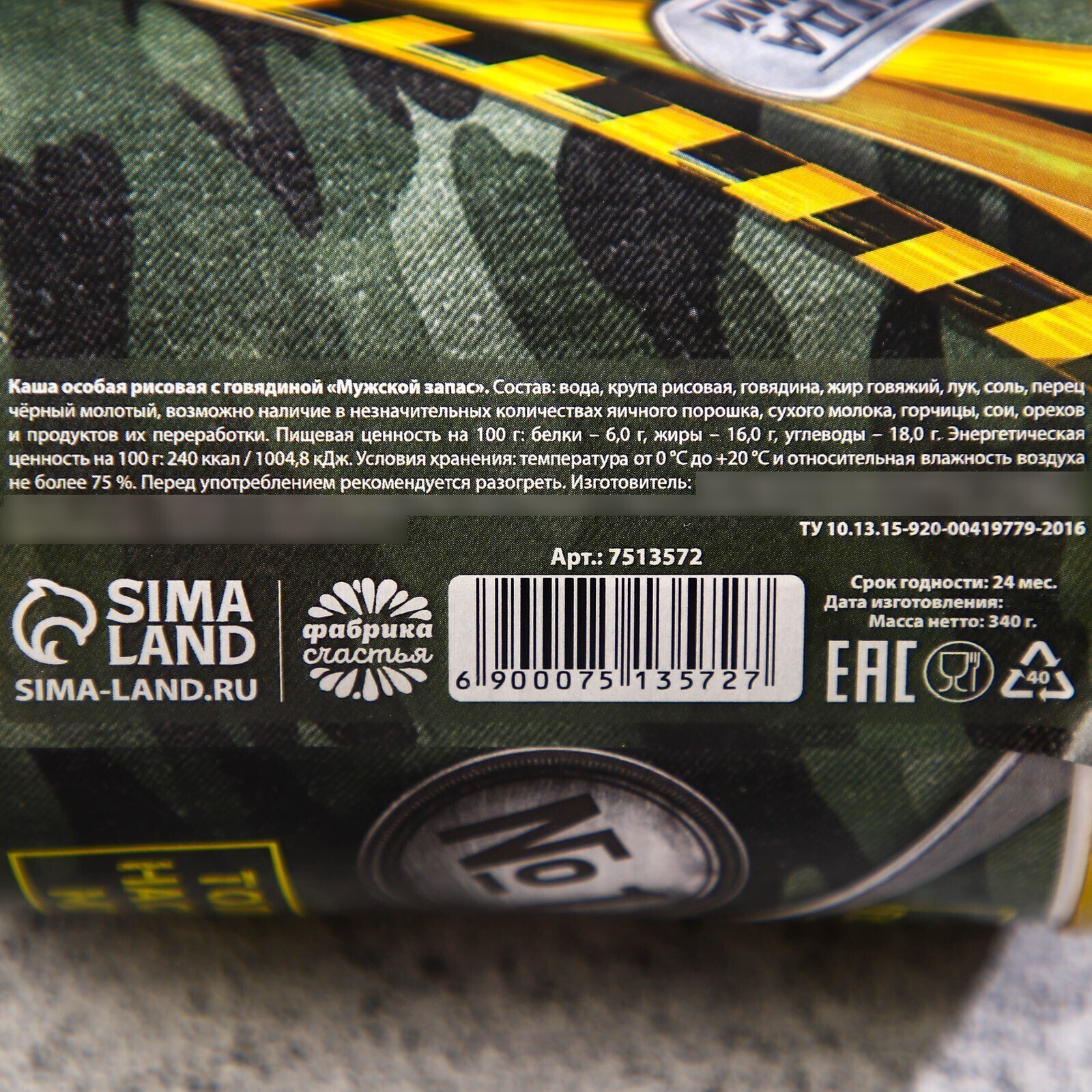Каша рисовая с говядиной «Мужской стратегический запас», 340 г