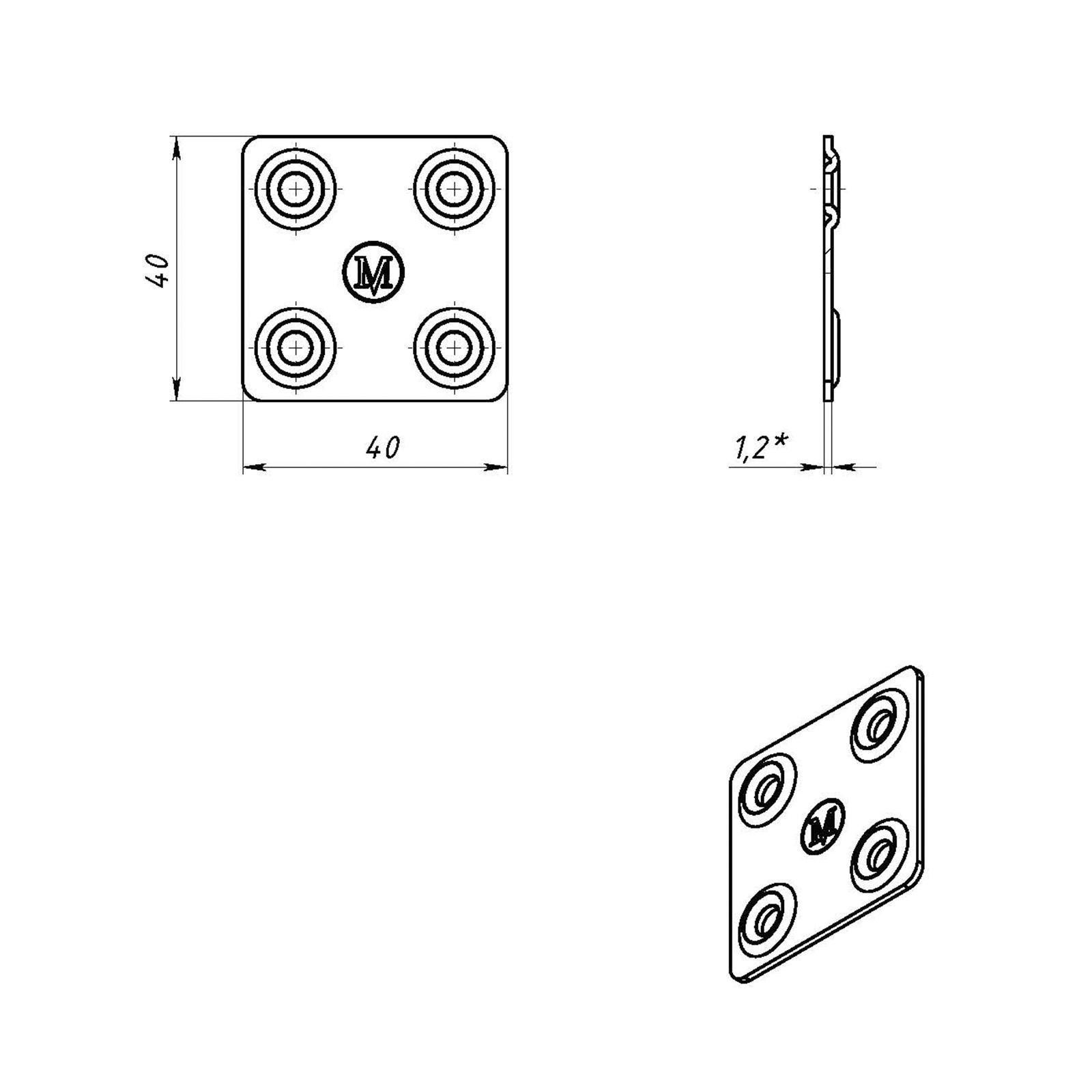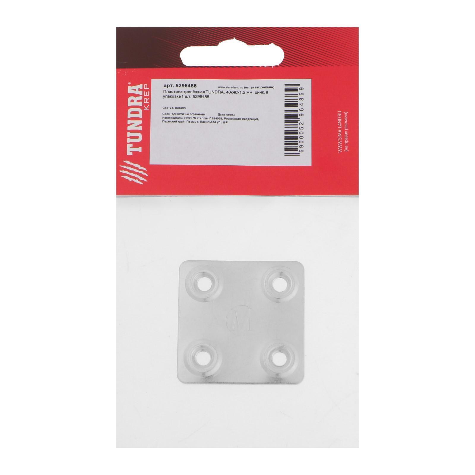 Пластина крепёжная ТУНДРА krep, 40х40х1.2 мм, цинк, в упаковке 1 шт.