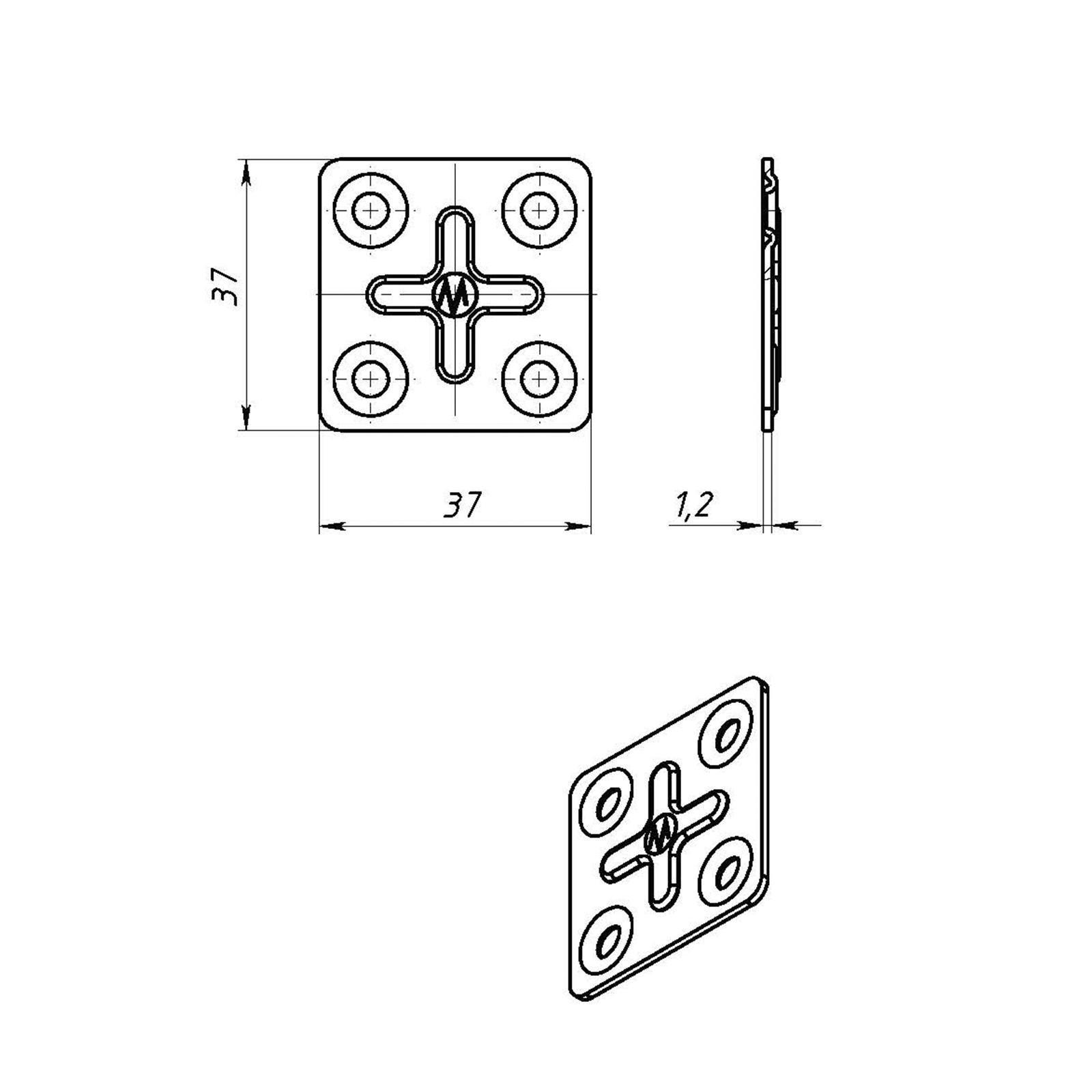 Пластина крепёжная, оцинкованная, 37 х 37 х 1.2 мм