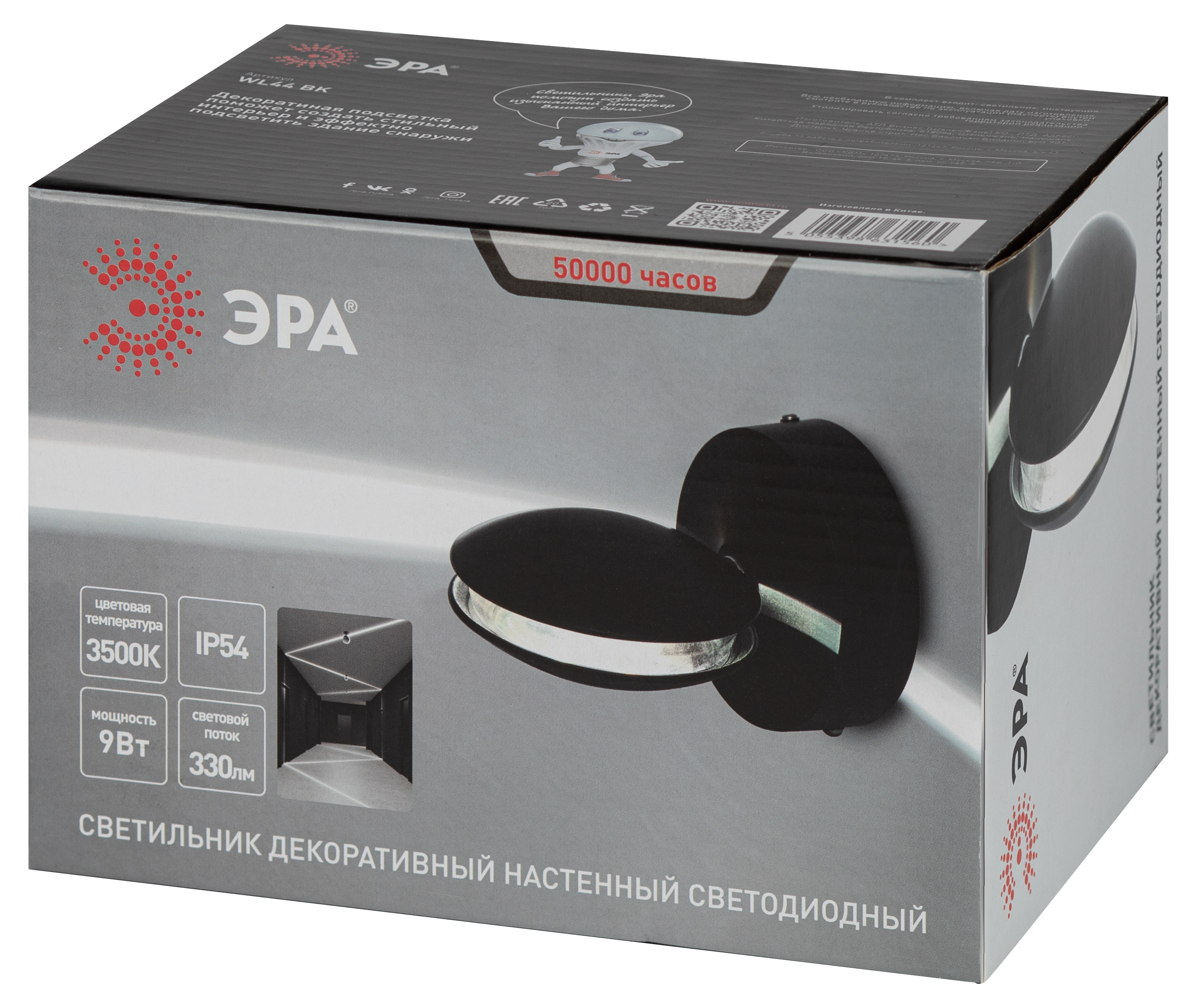 Декоративная подсветка ЭРА WL44 BK светодиодная 9Вт 3500К черный IP54 для интерьера, фасадов зданий