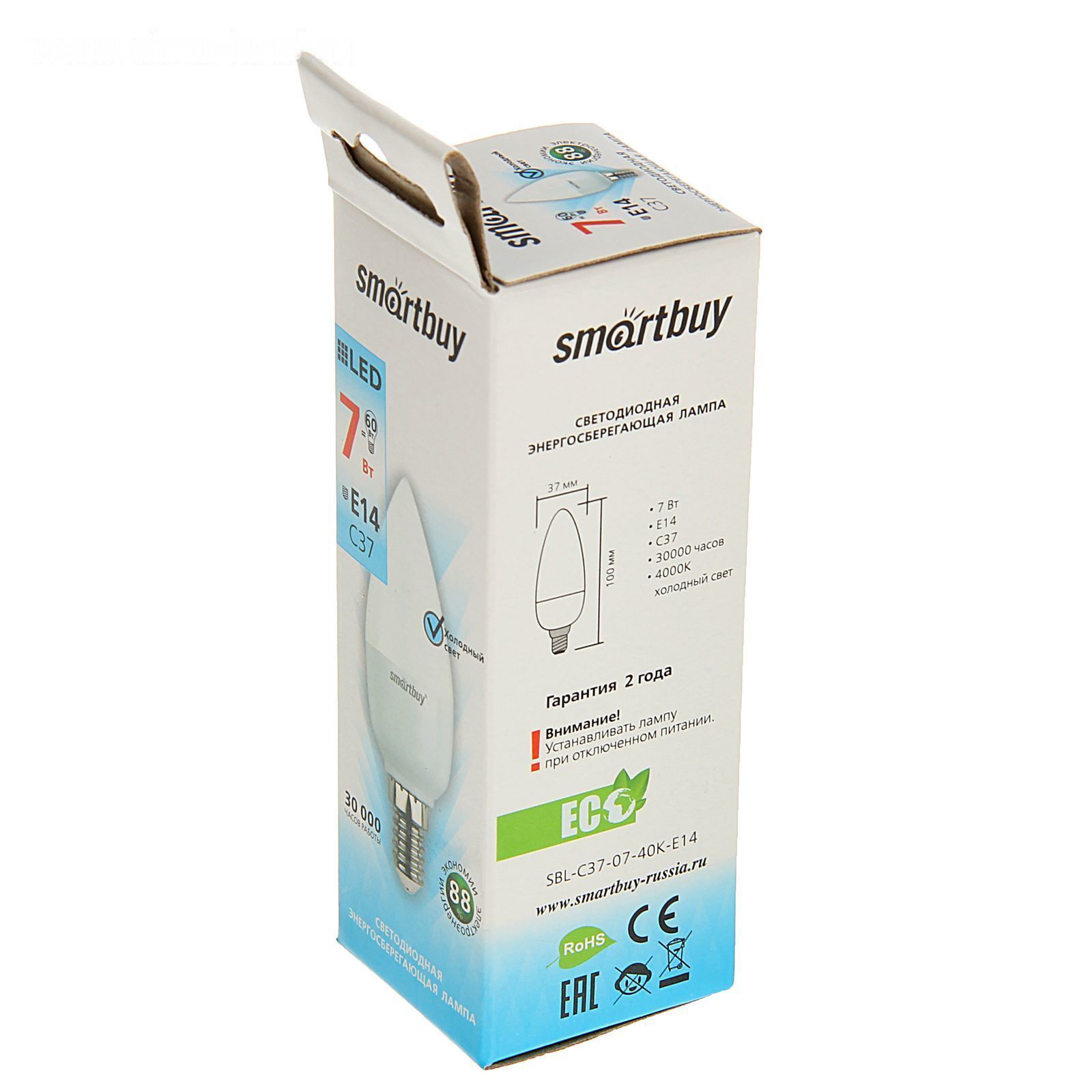 Лампа cветодиодная Smartbuy, E14, C37, 7 Вт, 4000 К, дневной белый свет
