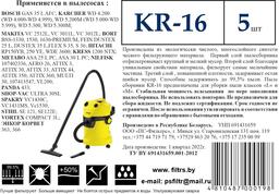 KR-16 это синтетические одноразовые пылесборники-мешки для пылесосов фирм BOSCH, MAKITA, KARCHER (6.904-409.0). В комплект входит 5 пылесборников .