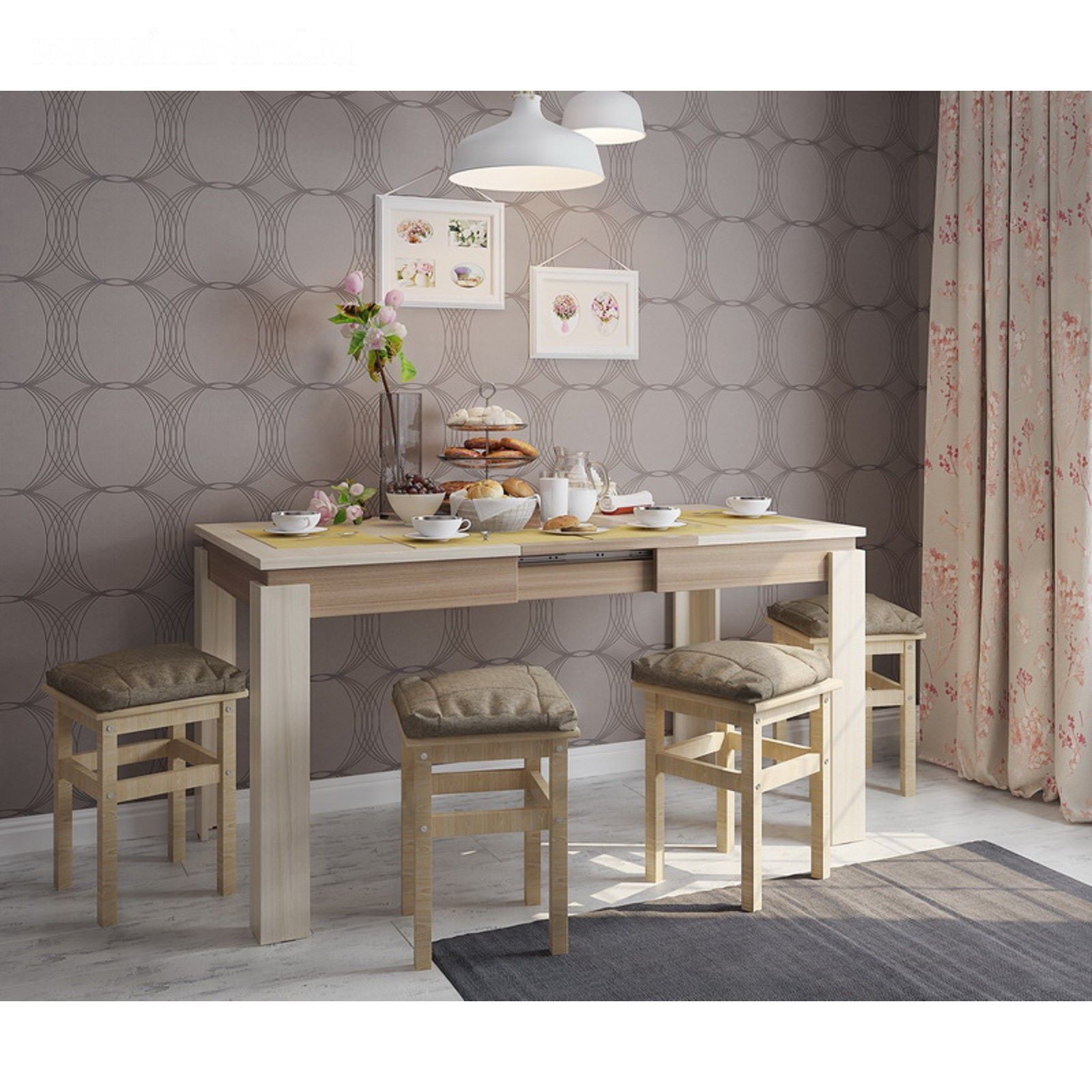 Перед вами обеденный стол, который впишется в любой интерьер. Установите его на кухне или в столовой. За этим предметом мебели легко ухаживать, он прочно стоит на своих четырёх ножках и станет центром задушевных бесед!