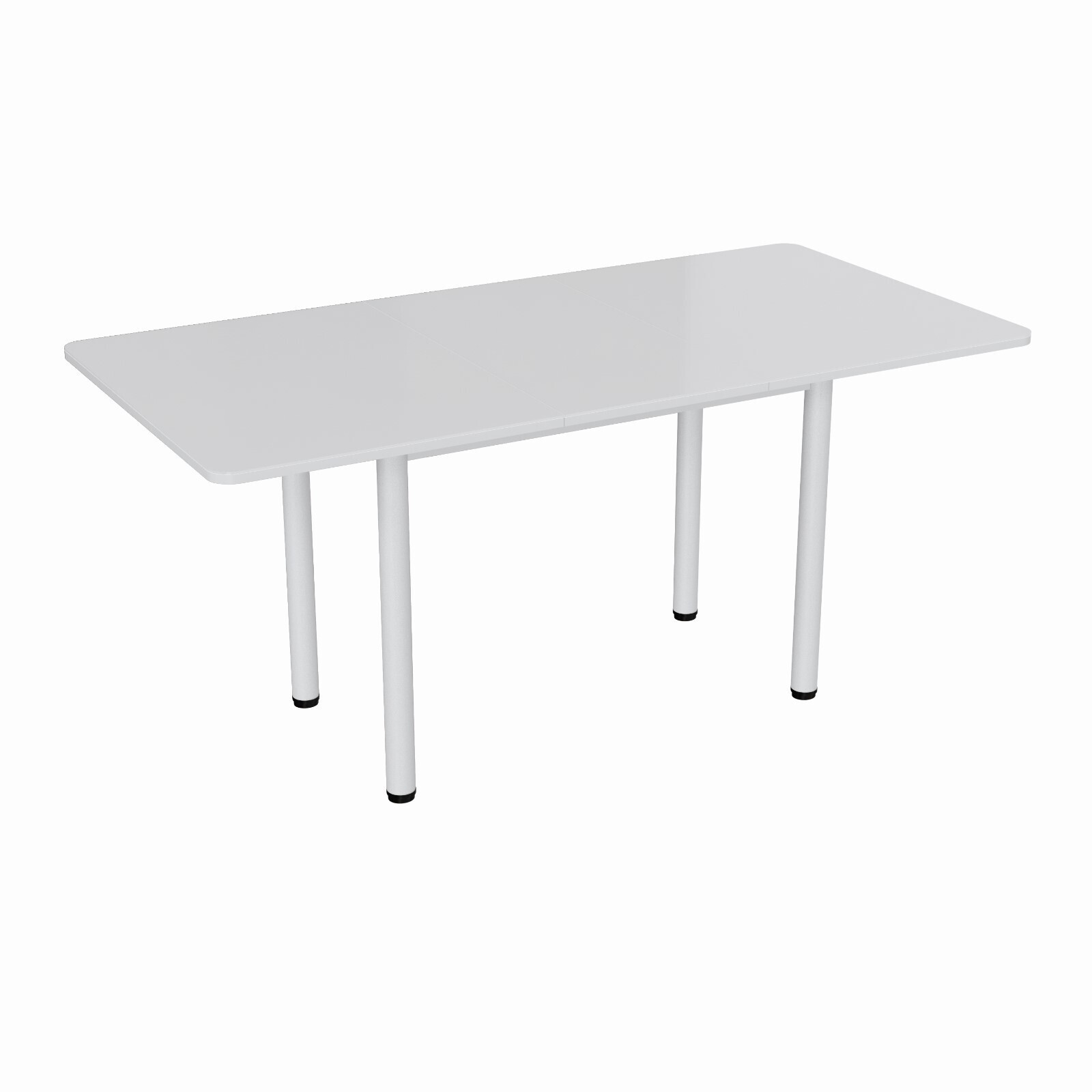 Стол раздвижной с фп белый 1100/1500х700х777 стекло/пояс белый/ноги белые прямые