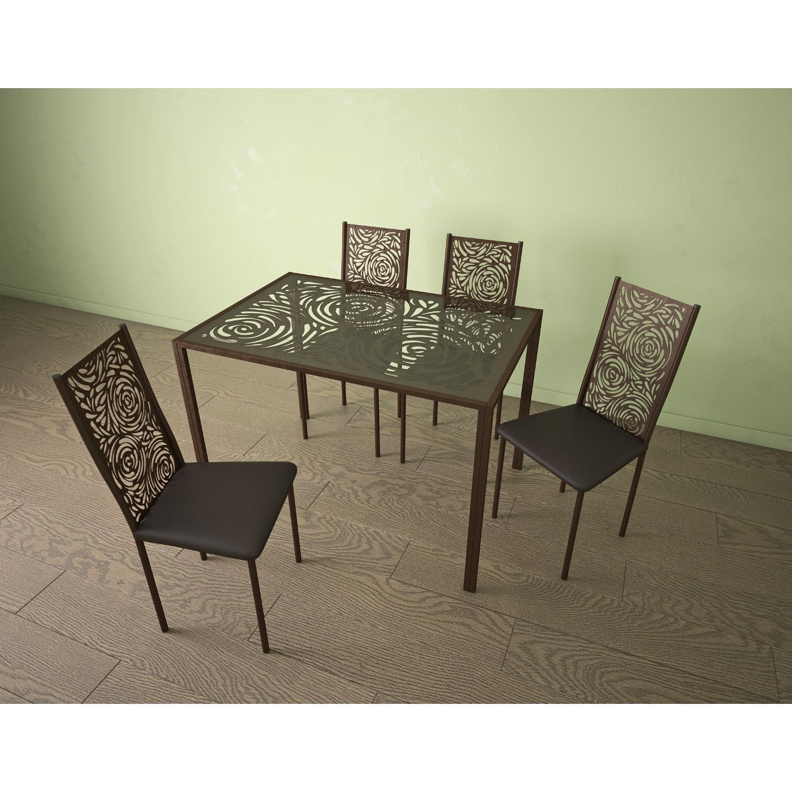 Обеденный стол «Роза», 1075 × 700 × 765 мм, металл коричневый, стекло, рисунок роза
