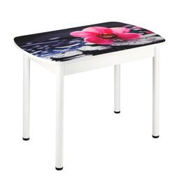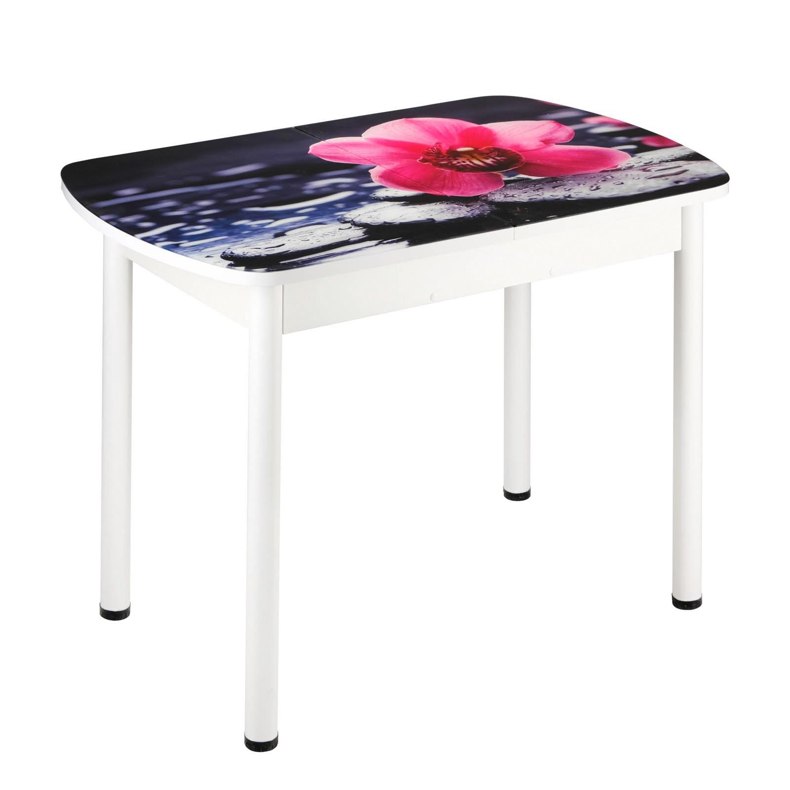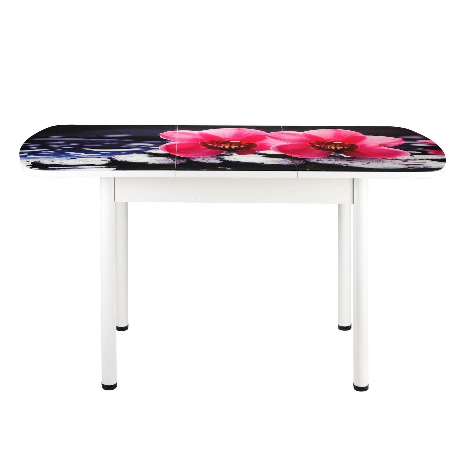 Стол раздвижной с ФП Орхидея на камне 1100/1500х700х777 стекло/пояс белый/Прям. бел ноги