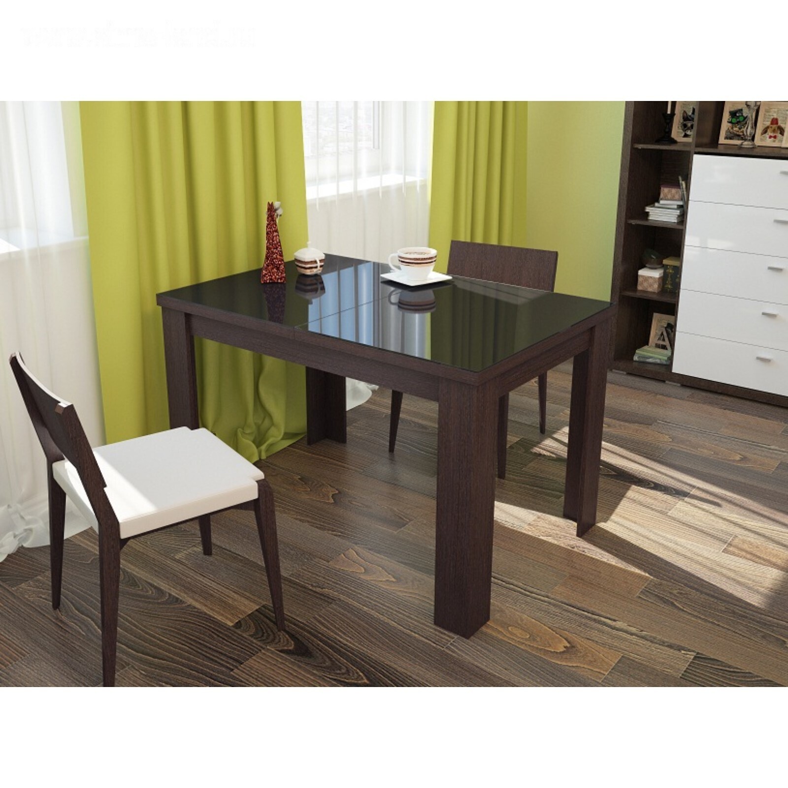 Обеденный стол «Детройт», нераскладной, 1200 × 800 мм, венге / стекло чёрное