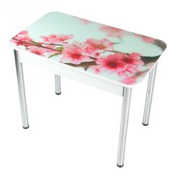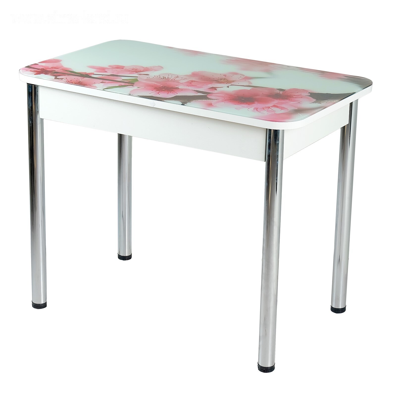 Стол прямоугольный с Фп Сакура 1000х600х777 стол. Стекл./пояс белый/прямые хром