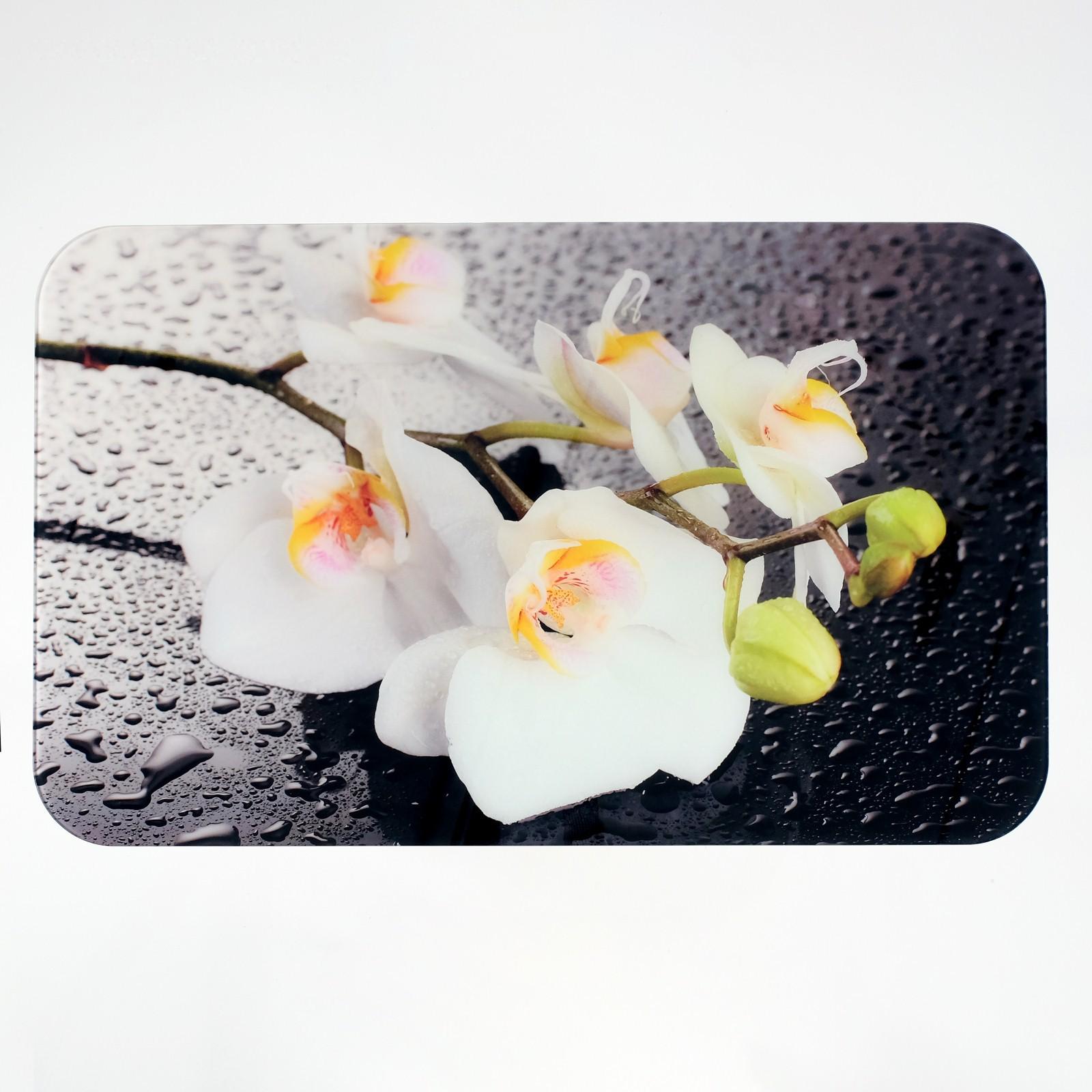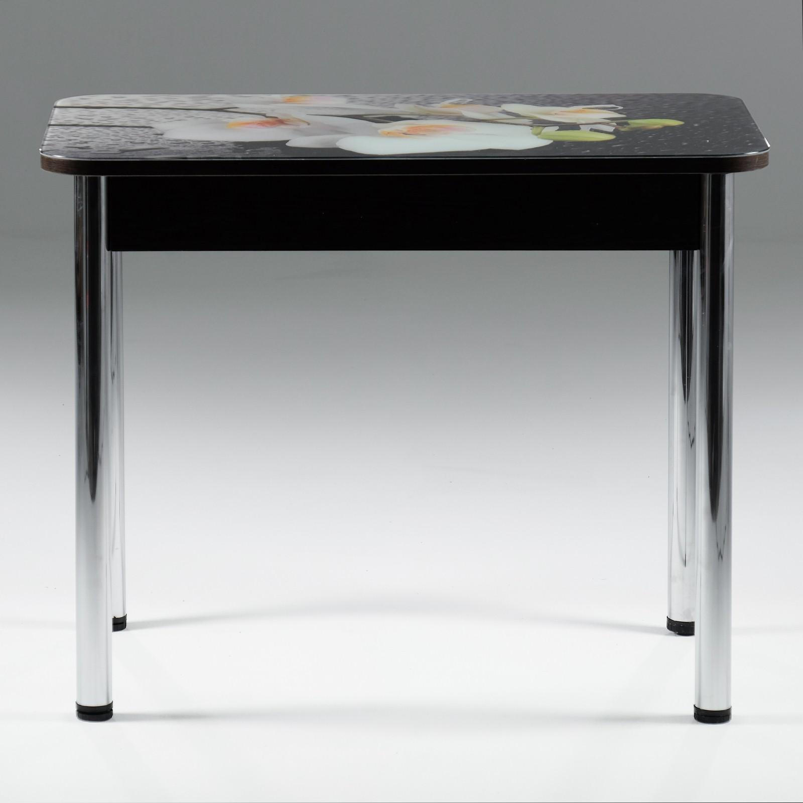 Стол прямоуголный с фп Орхидея белая 1000х600х777 стекло/ пояс венге/прямые хром