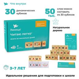 Обучающий набор Умница Читаю легко. Деревянные кубики для обучения чтению детей от 3 до 7 лет. Подготовка к школе 7006