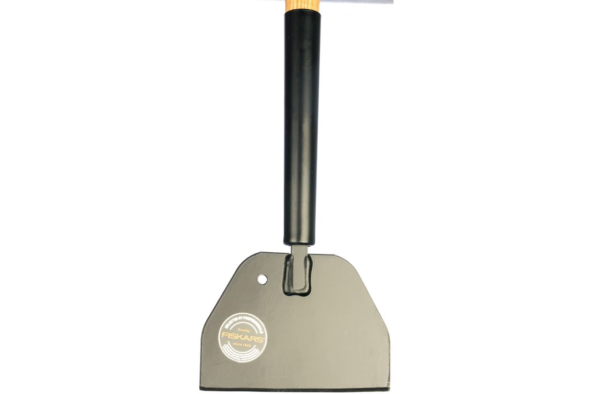 Инструмент оборудован деревянным черенком и лезвием из закаленной стали.