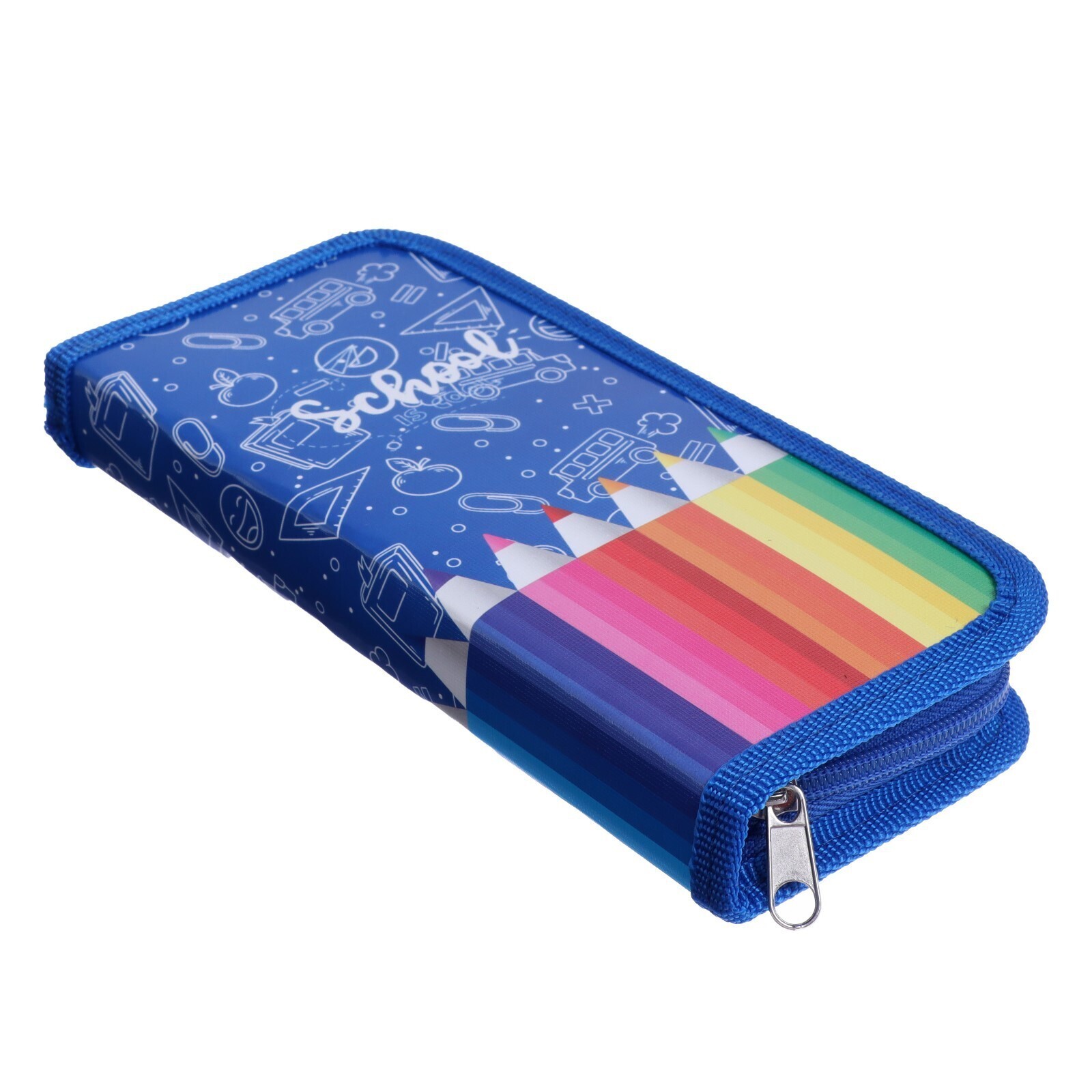 Пенал 1 секция, 90 х 195 х 25 мм, Calligrata "Карандаши" васильковый, ламинированный картон