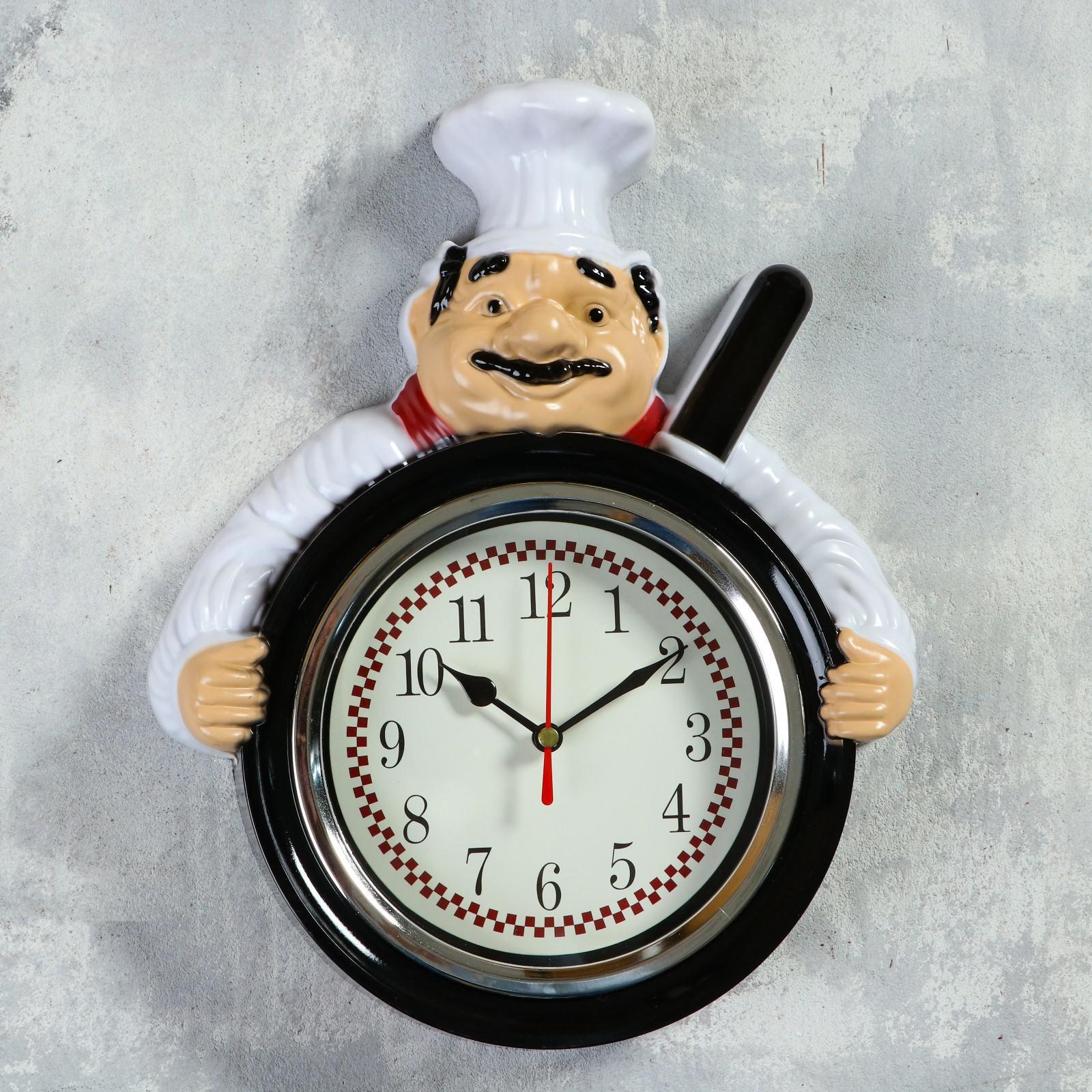 Часы настенные, серия: Кухня, "Повар со сковородой", дискретный ход, 26.5 х 20 см