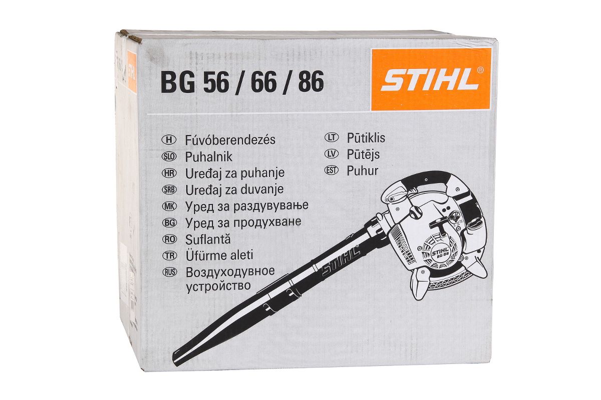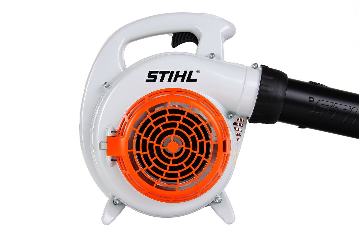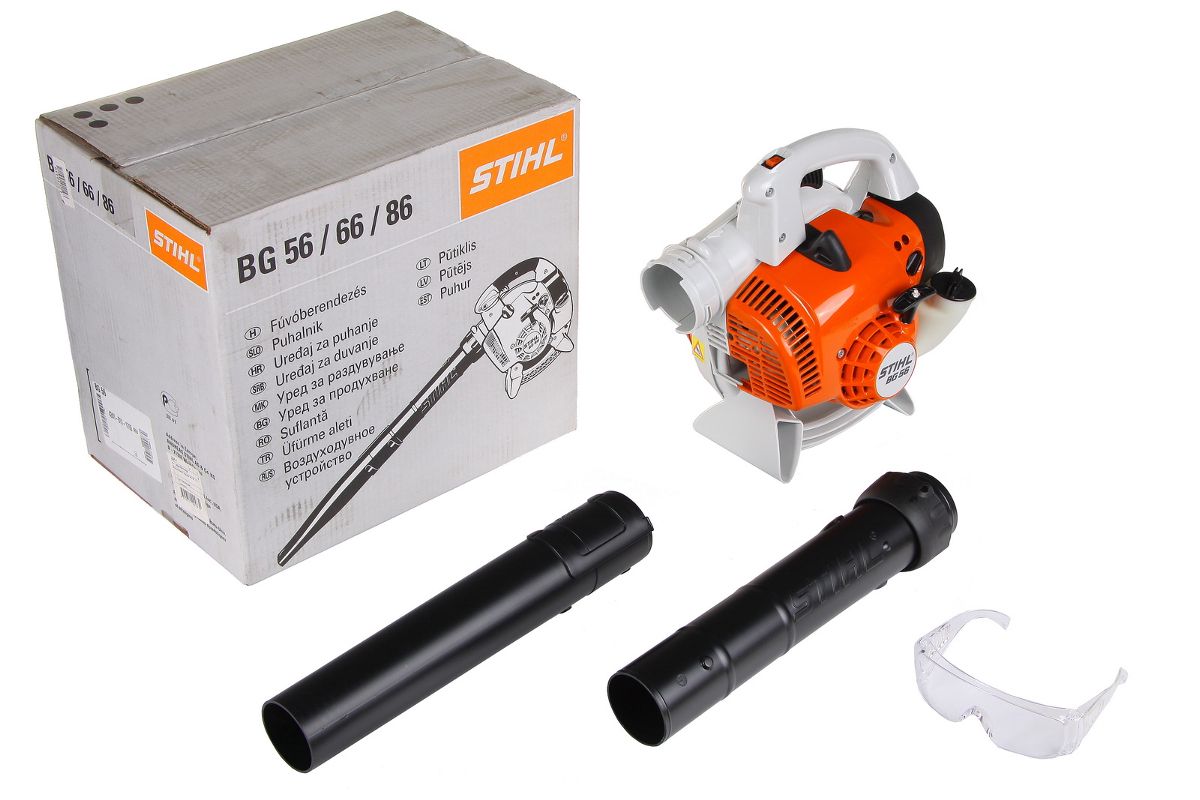 Воздуходувка STIHL BG56 – компактный и автономный ручной инструмент для уборки участка. Бензиновый двигатель BRIGGS&STRATTON объемом 27,2 см³ развивает мощность 700 Вт (1 л.с). Этого достаточно для производительности по воздуху до 710 м³/ч. При помощи рукоятки газа скорость потока можно изменять от 60 до 71 м/сек. Емкость топливного бачка 540 мл обеспечивает длительную работу устройства. Уровень шума двигателя до 70 дБ. Сухой вес воздуходувки 4,2 кг.