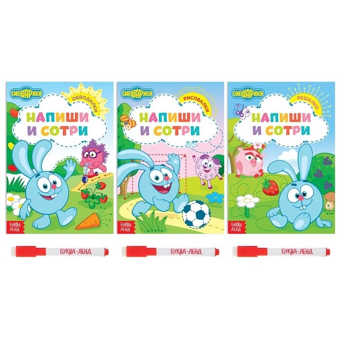 Набор книг 3 шт. по 12 стр. Напиши и сотри», Смешарики