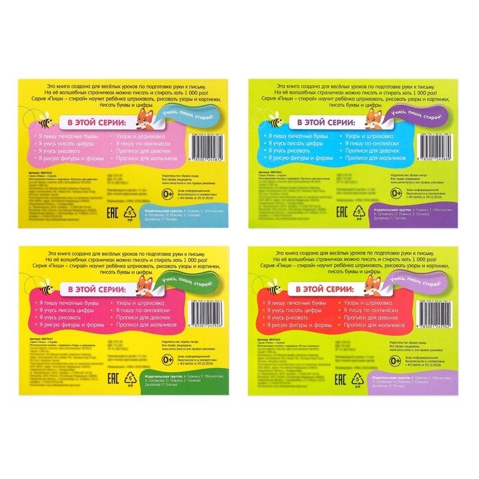 Книги многоразовые с маркером №2, набор, 4 шт. по 12 стр.