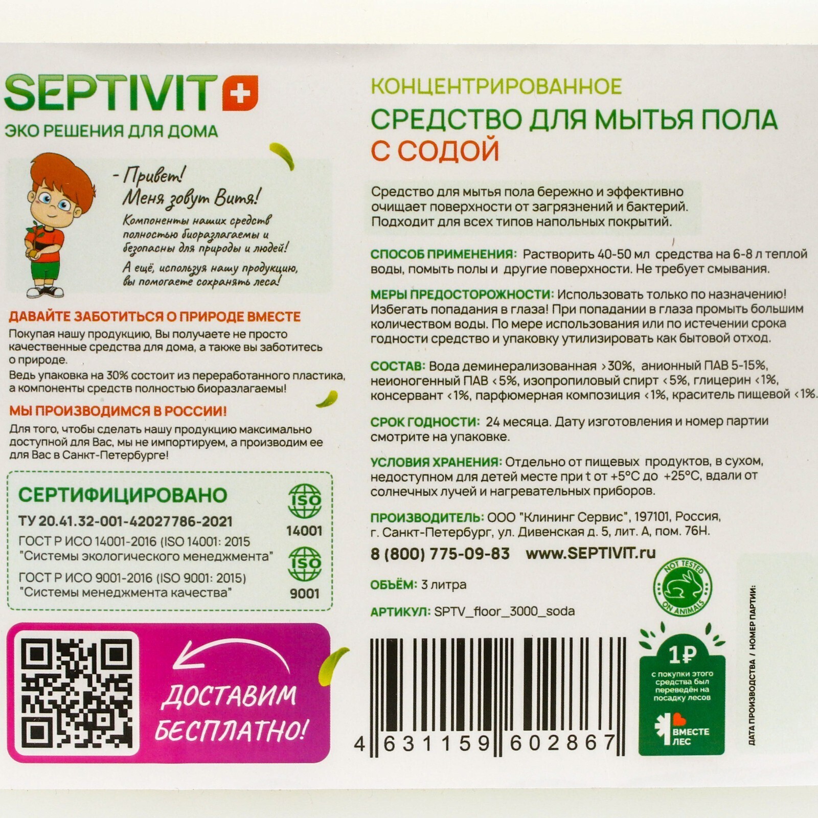 Средство для мытья полов SEPTIVIT Premium в удобном экономичном объеме 5 литров - эффективное жидкое средство для мытья пола на основе биоразлагаемых компонентов.