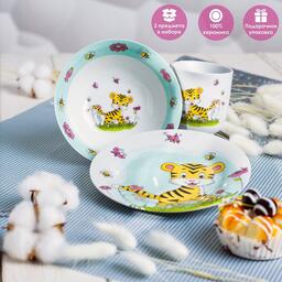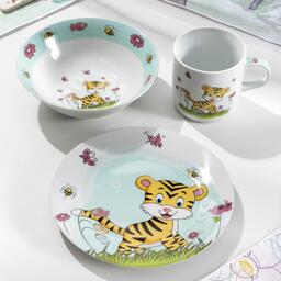 Набор детской посуды Доляна «Тигрёнок», 3 предмета: кружка 250 мл, миска 400 мл, тарелка 18 см