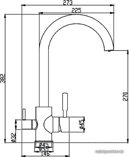 • Длина (вылет) излива 225 мм