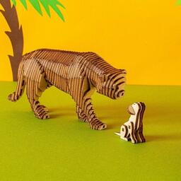 Деревянный конструктор UNIWOOD "Львиная семья" Сборка без клея, 204 детали с набором карандашей