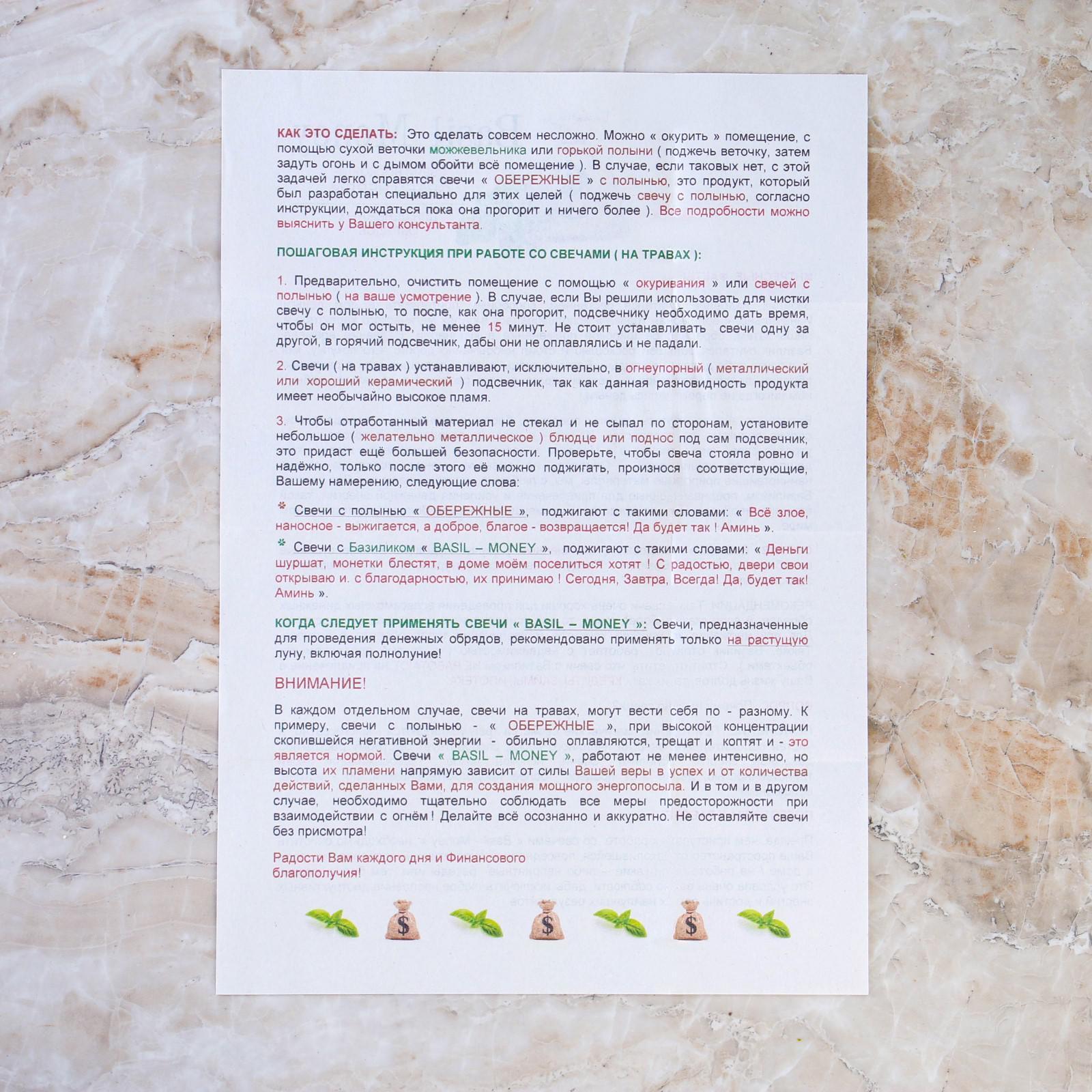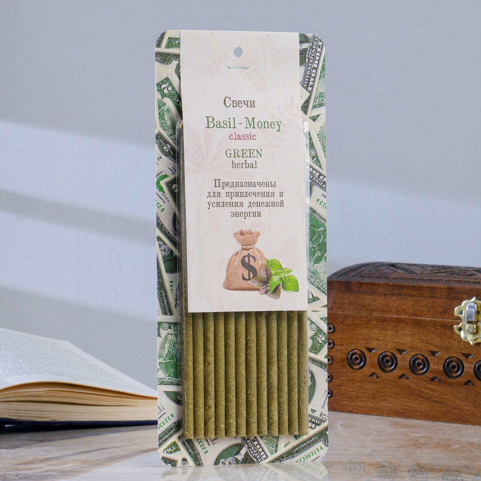 Свеча магическая медовая с базиликом для привлечения денег «Basil-Money», 12 штук