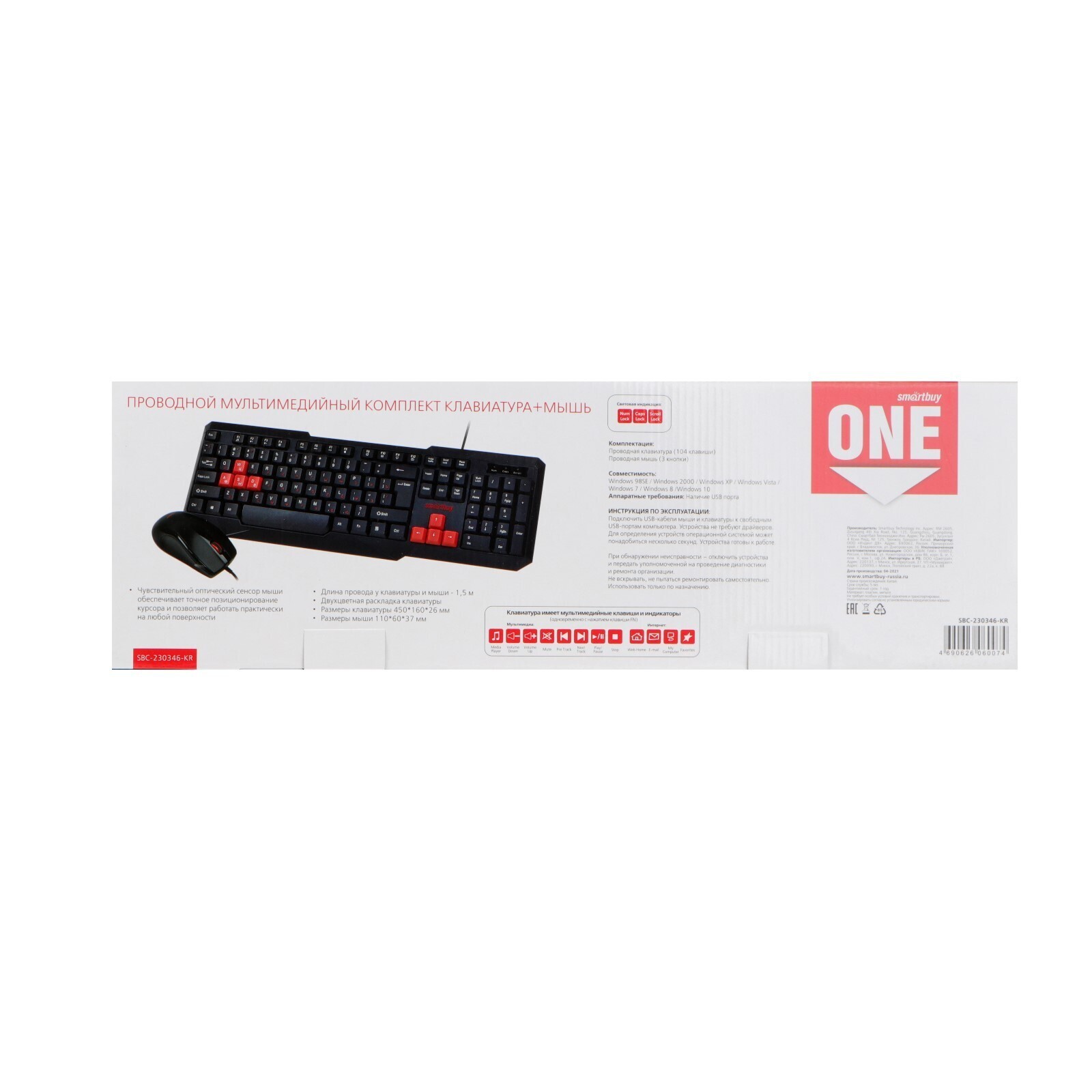 Комплект клавиатура и мышь Smartbuy ONE, проводной, мембранный,1200 dpi,USB, черный