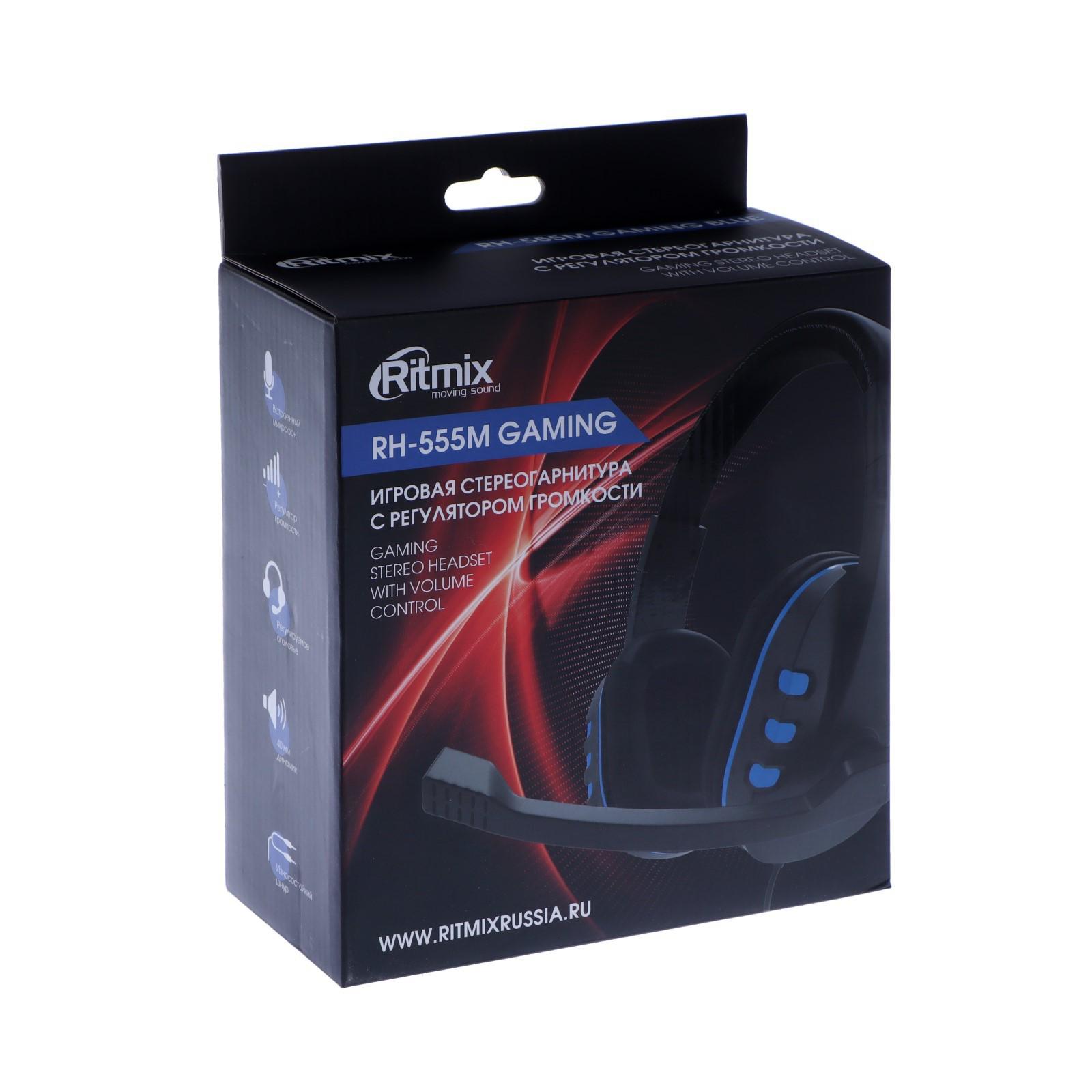 Наушники Ritmix RH-555M Gaming, игровые, полноразмерные, микрофон, 2x3.5мм, 1.8м,черно/синие