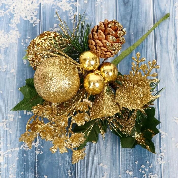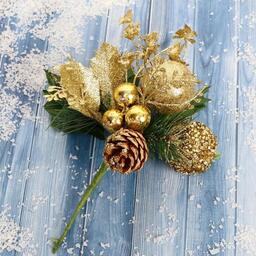 Декор "Зимние мечты" шиповник в бисере 18 см, золото