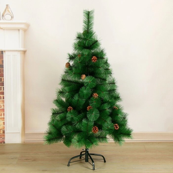 Кедр зелёный шишки 120 см, d нижнего яруса 80 см, d игл 10 см, 110 веток, металл подставка