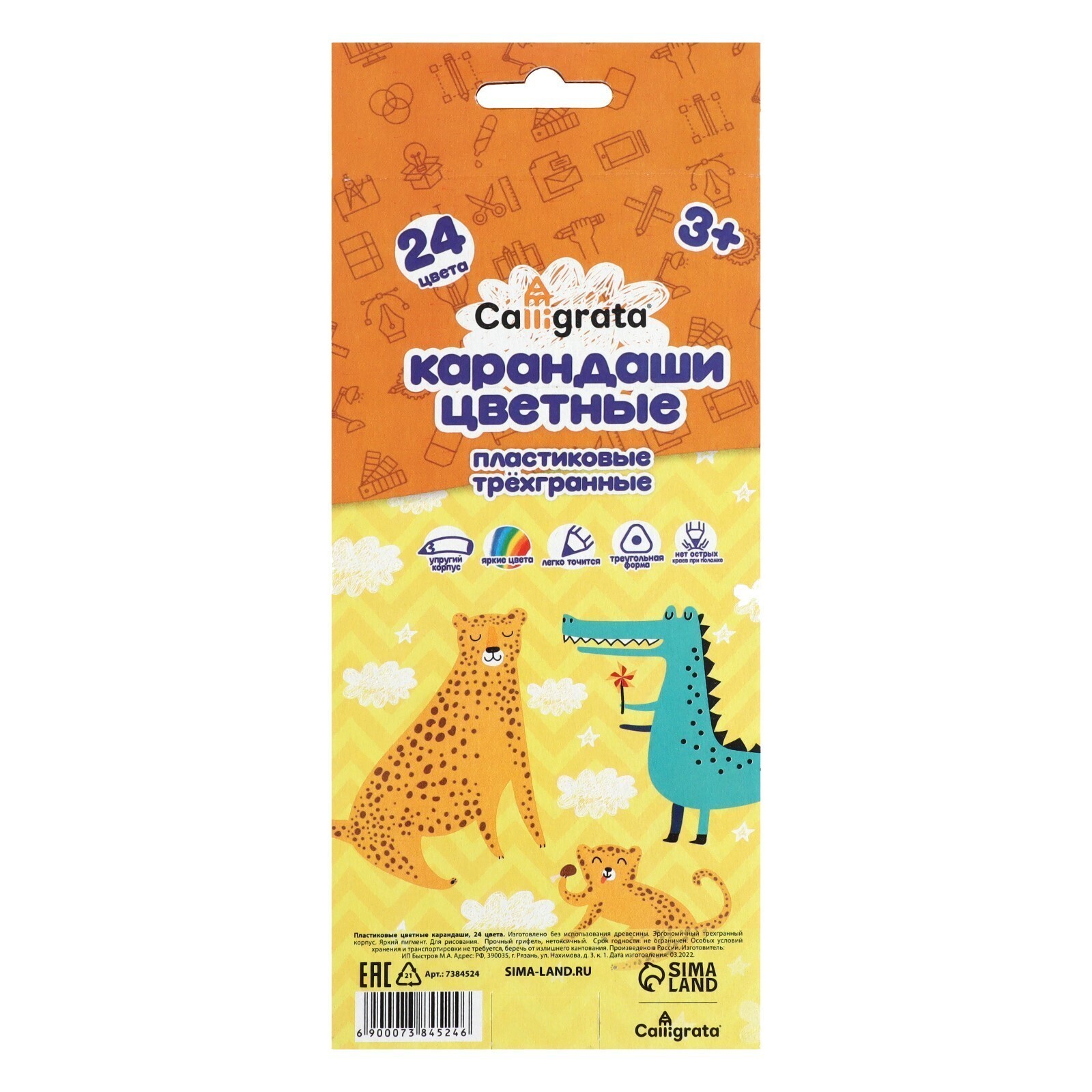 Карандаши 24 цвета Calligrata, заточенные, трехгранные, пластиковые, картонная упаковка, европодвес