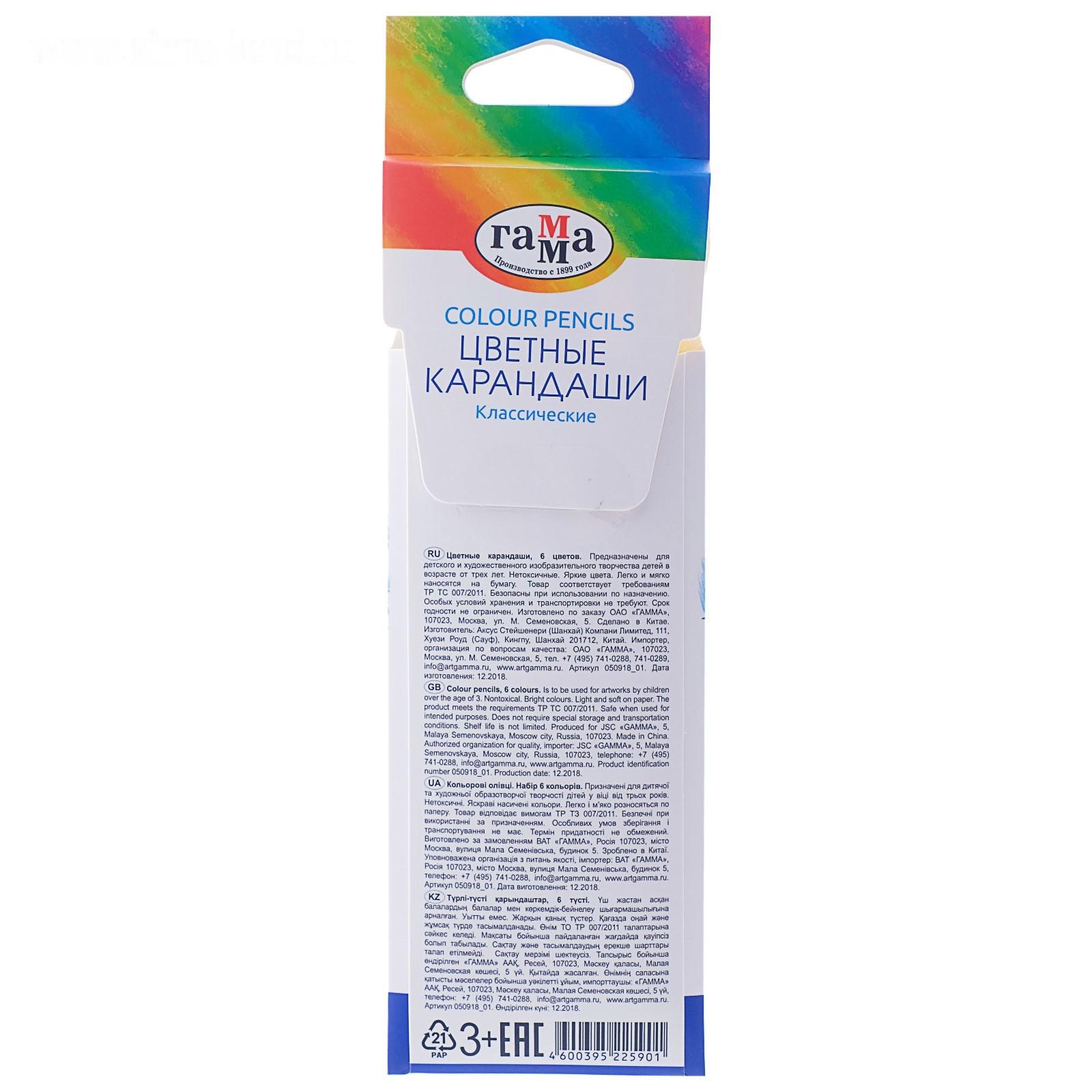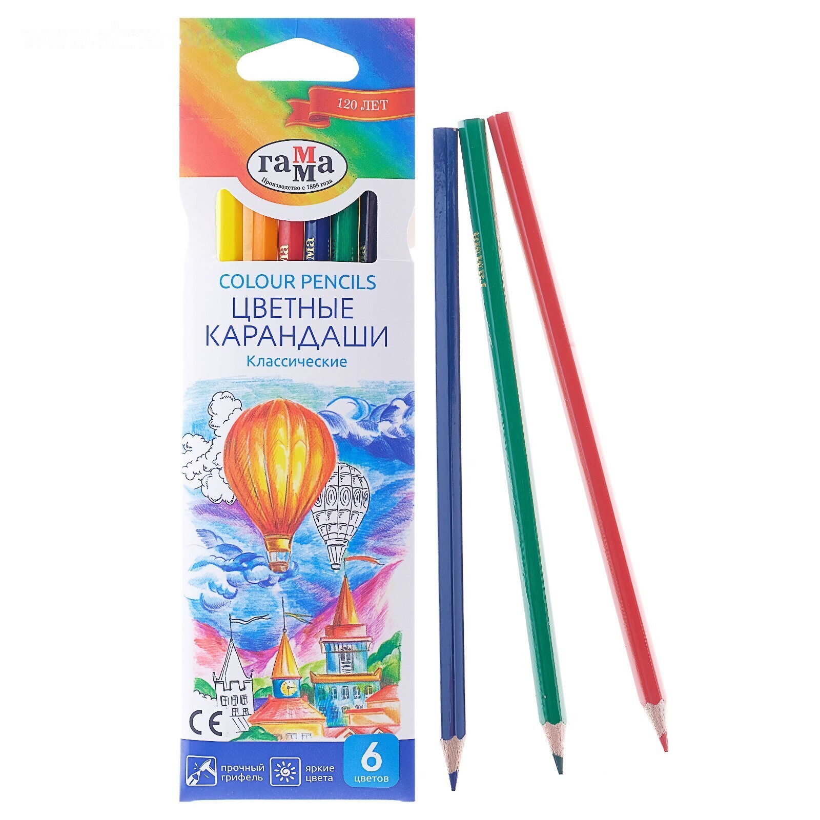 Карандаши 6 цветов «Гамма» «Классические», стержень d=2.6 мм, шестигранные