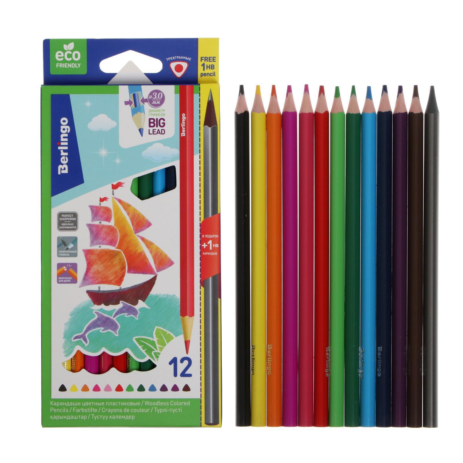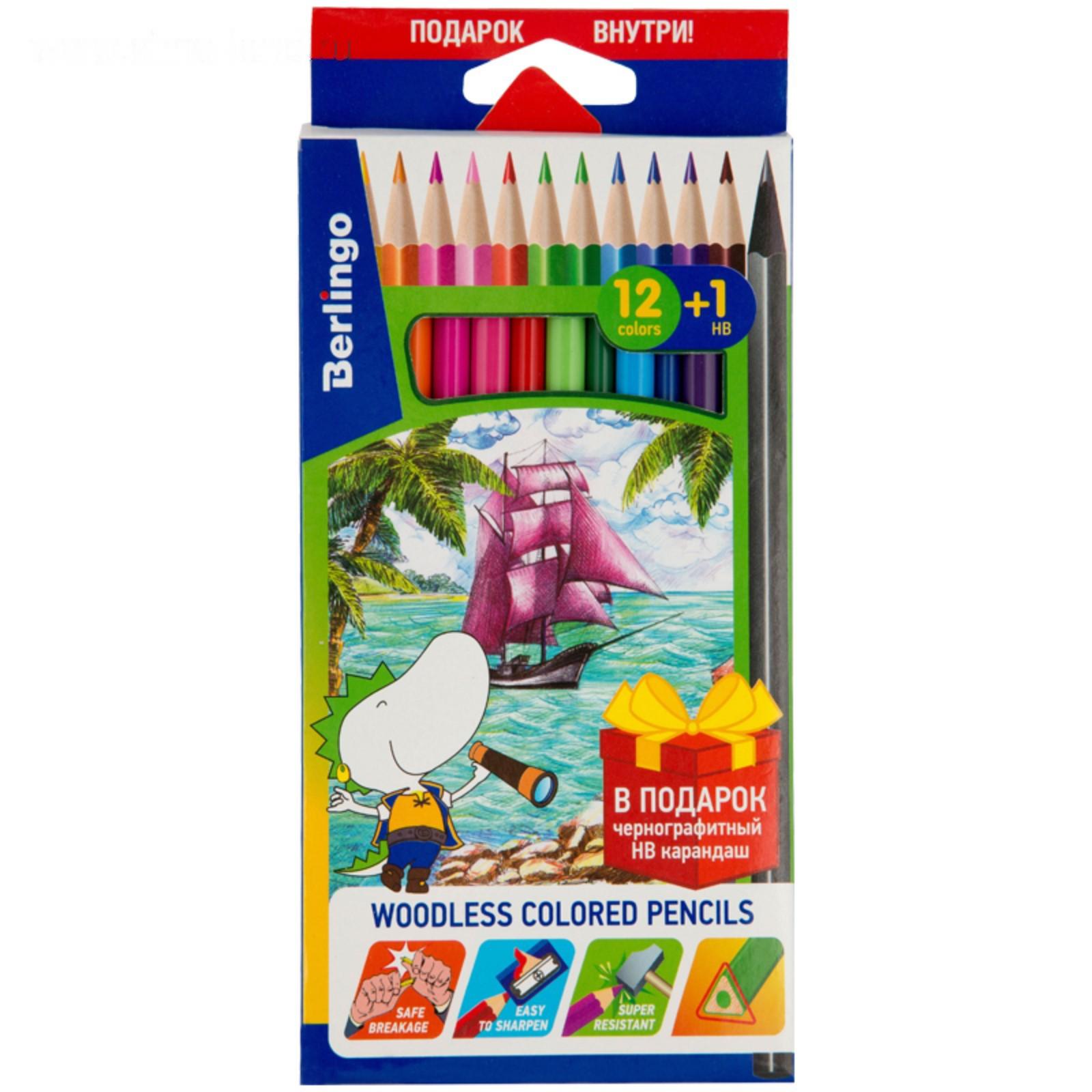Карандаши 12 цветов Berlingo «Корабли» +1 чернографитный карандаш HB, европодвес