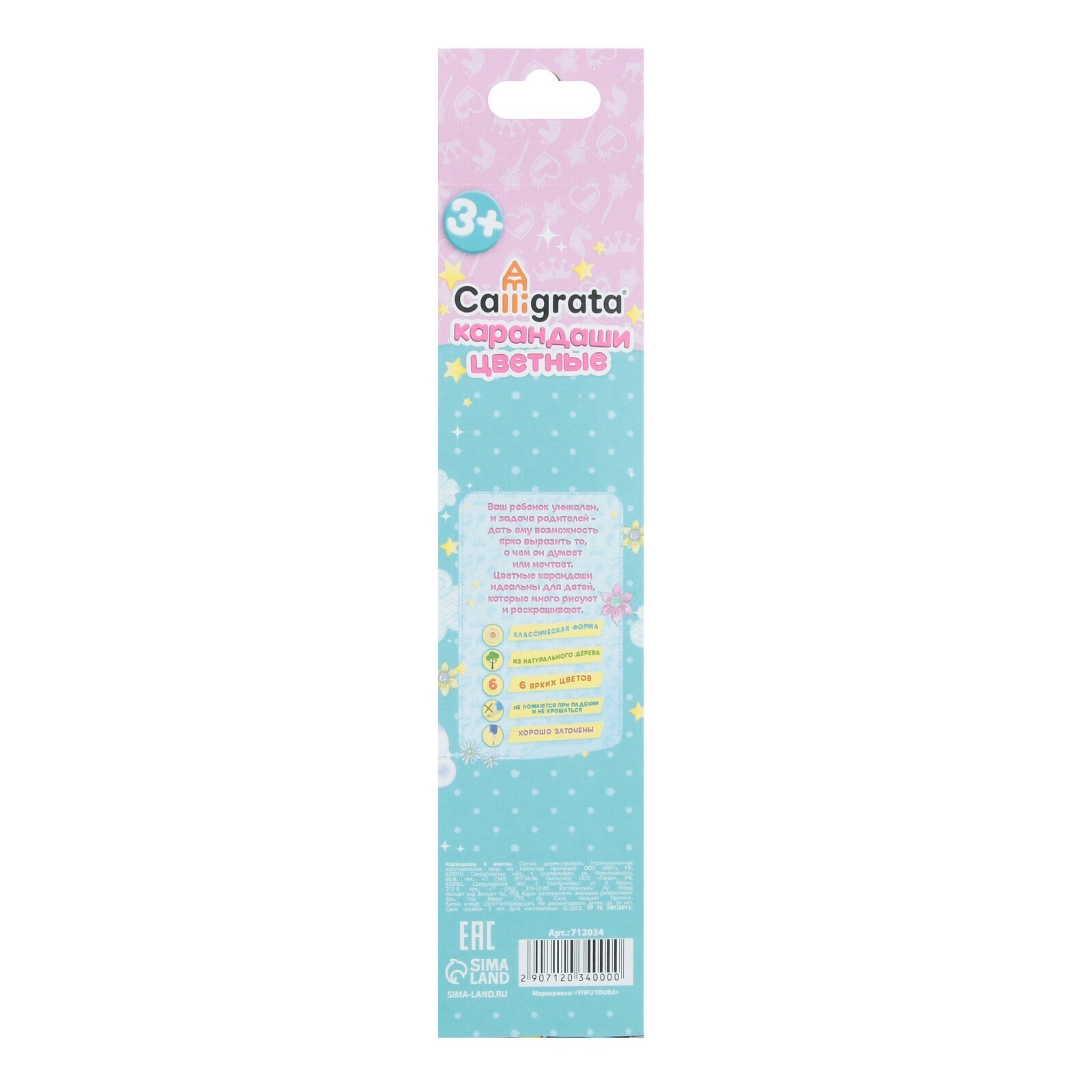 Карандаши 6 цветов "Принцесса", деревянные, шестигранные