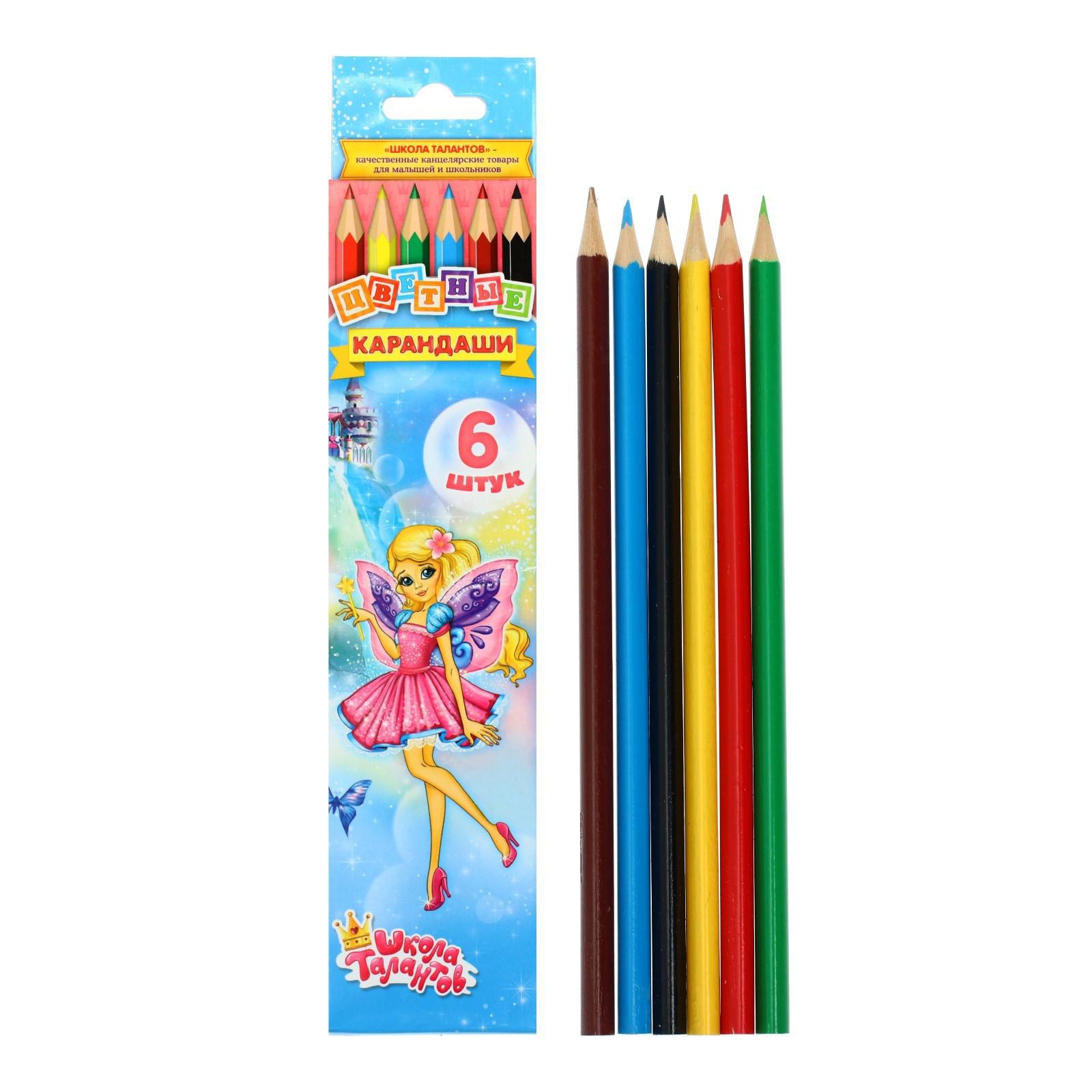 Карандаши 6 цветов "Принцесса", корпус деревянный, треугольный, в картонной коробке