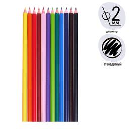 Набор цветных карандашей бюджетной ценовой категории, 12 цветов, яркие цвета, стандартный средней жесткости грифель.