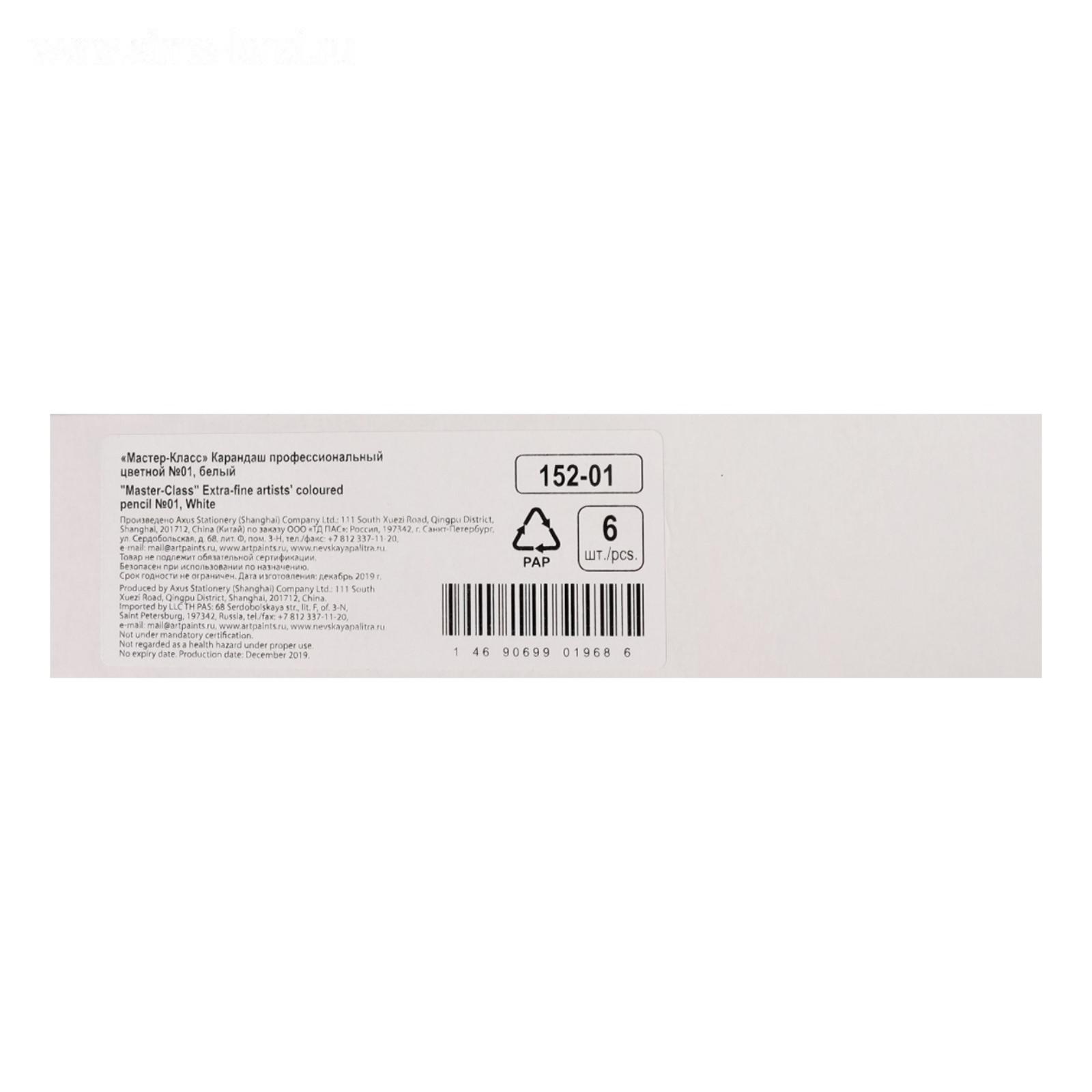 Карандаш художественный (мягкий), ЗХК "Мастер Класс", №01, белый, ЦЕНА ЗА 1 ШТ!! 152-01